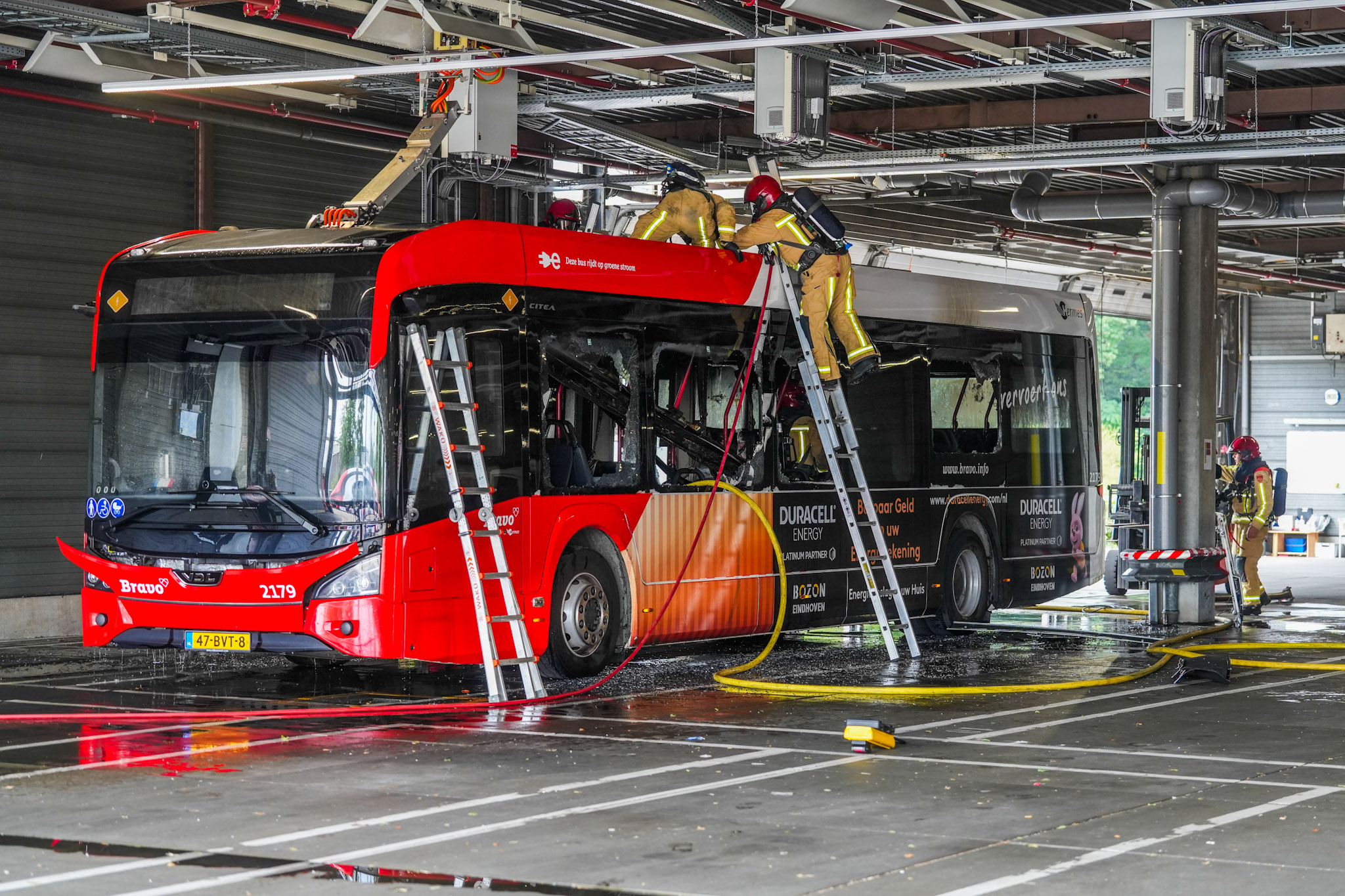 Gewonde bij brand in stadsbus in opslagplaats van Hermes