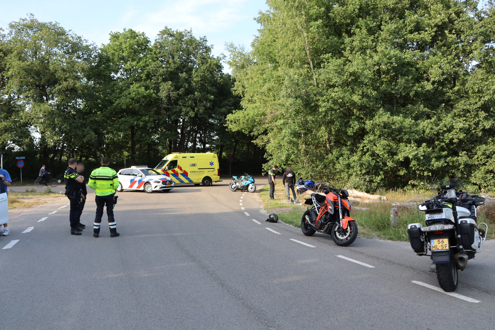 De motorrijder reed mee in een groep motorrijders die aan het touren waren. Door nog onbekende oorzaak kwam hij ten val en maakte daarbij een harde smak.