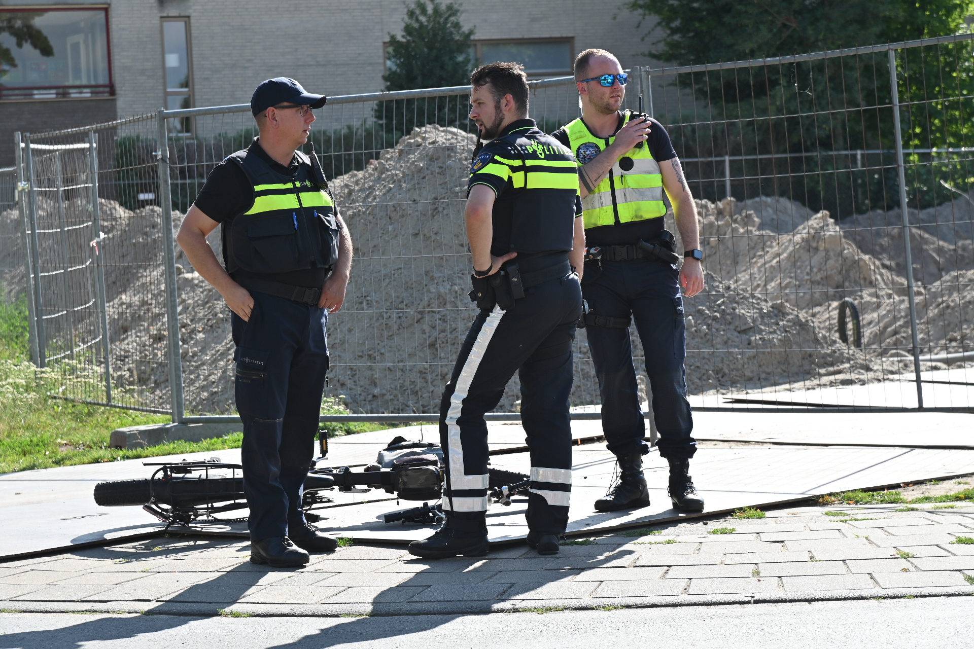 De impact van de botsing was groot: de voorruit van de auto raakte zwaar beschadigd. De politie heeft het kruispunt afgesloten voor onderzoek en ook handhavers van de gemeente zijn ter plaatse. Wie er geen voorrang heeft verleend, is nog niet bekend.