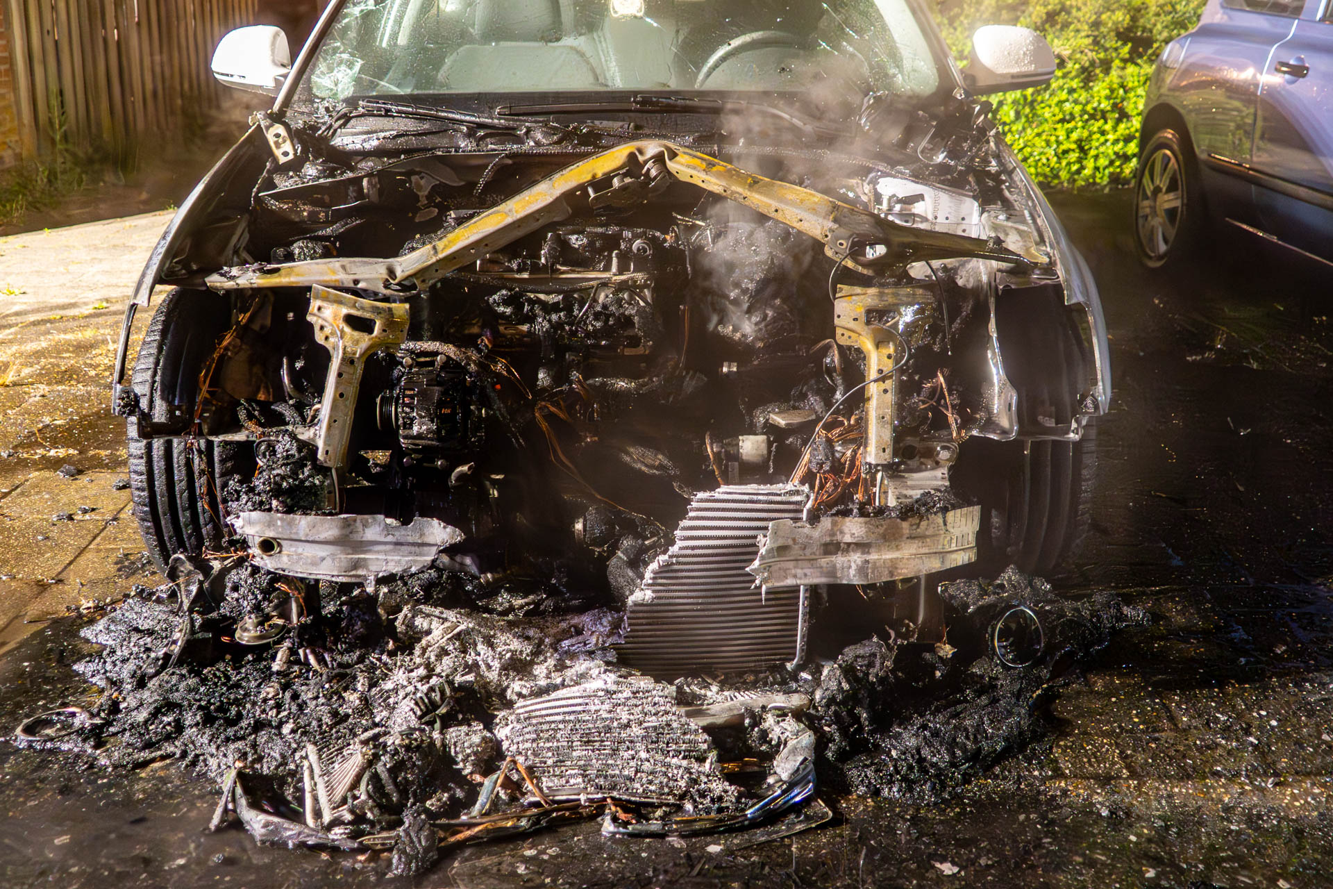 De oorzaak van de brand is nog niet bekend, maar brandstichting wordt niet uitgesloten. De politie gaat in de buurt op zoek naar camerabeelden of getuigen. De uitgebrande auto wordt door een bergingsbedrijf afgevoerd.