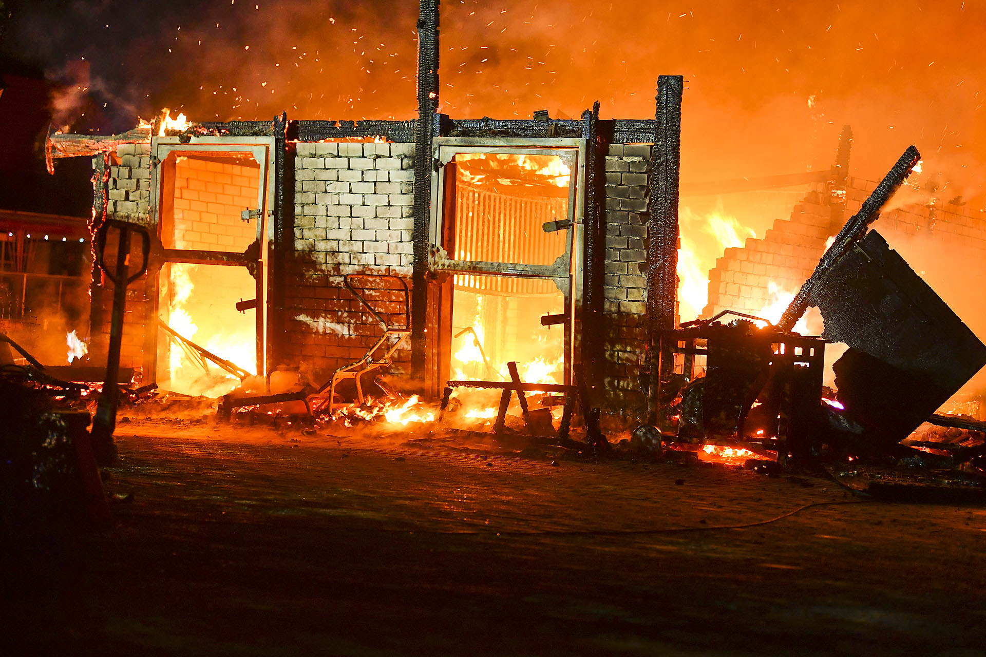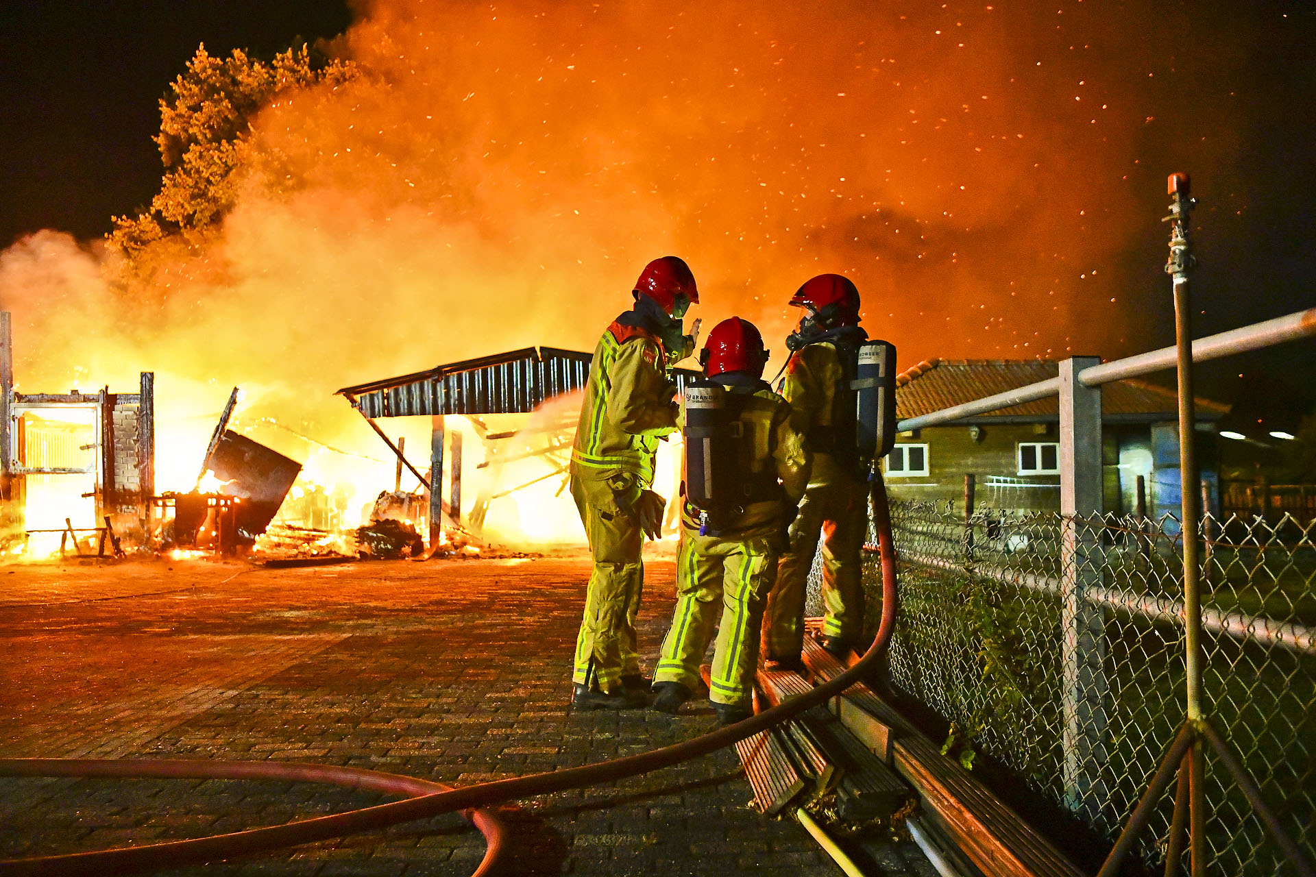 Uitslaande brand verwoest schuren achter woning, twee varkens gered