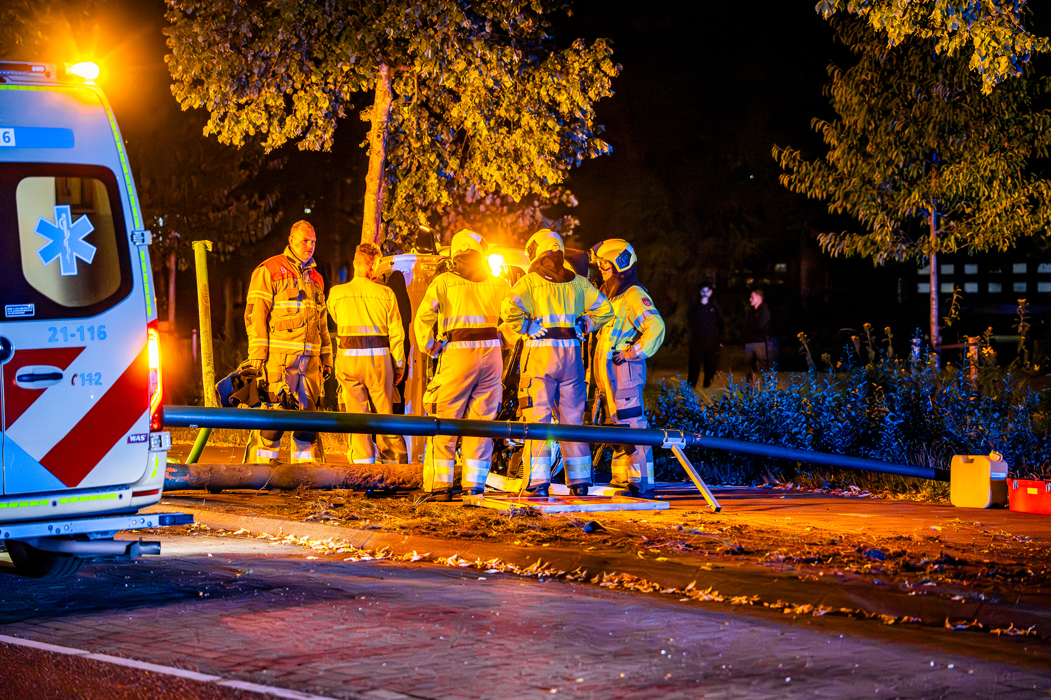 Een auto raakte een lantaarnpaal en kwam daarna op zijn zijkant tot stilstand. De brandweer van Heesch, een ambulance en twee politiewagens kwamen ter plaatse.