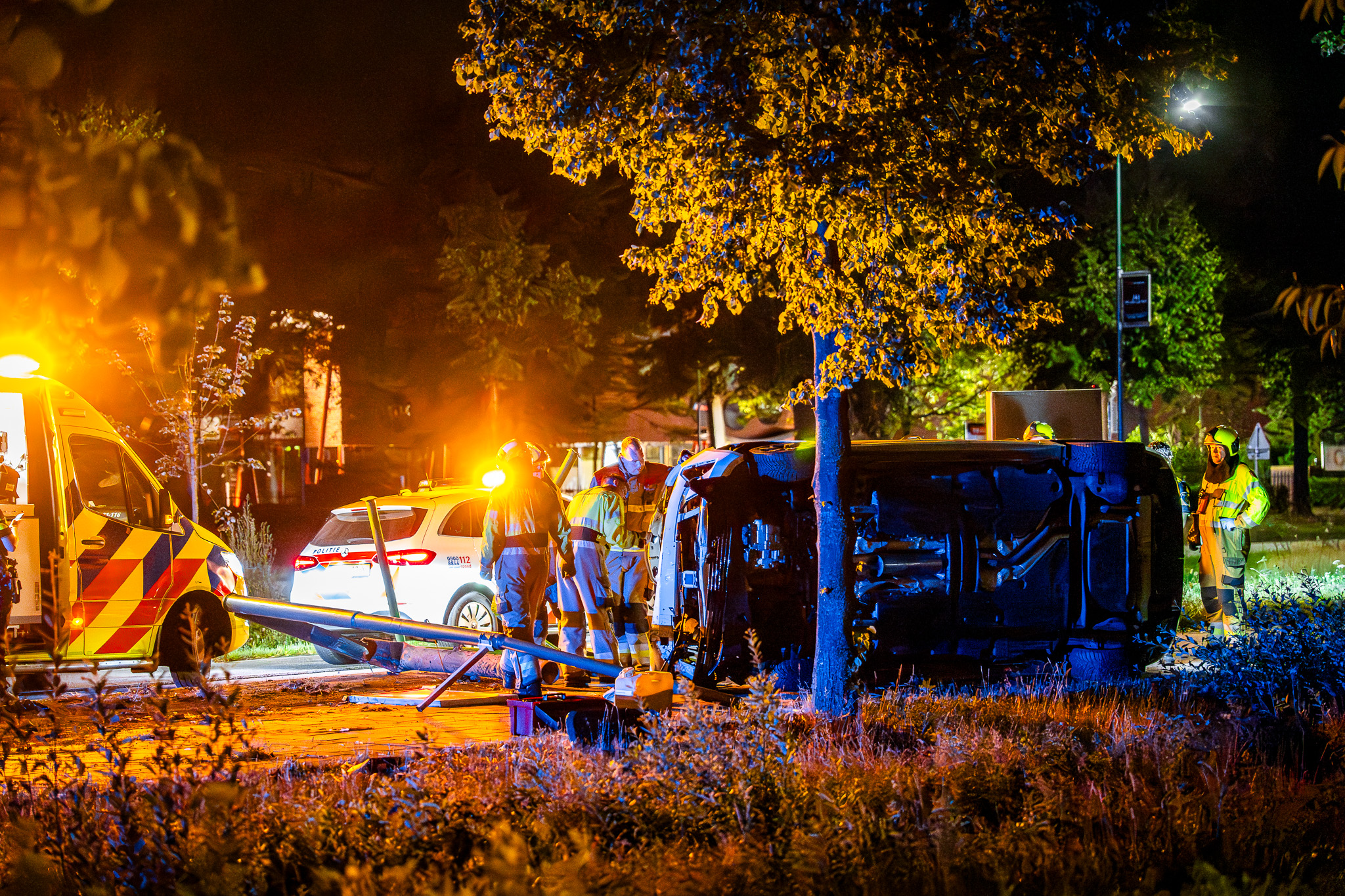 Eén persoon is met onbekend letsel naar het ziekenhuis gebracht. Of er meer inzittenden waren, is nog niet duidelijk. De politie onderzoekt de oorzaak van het ongeval.