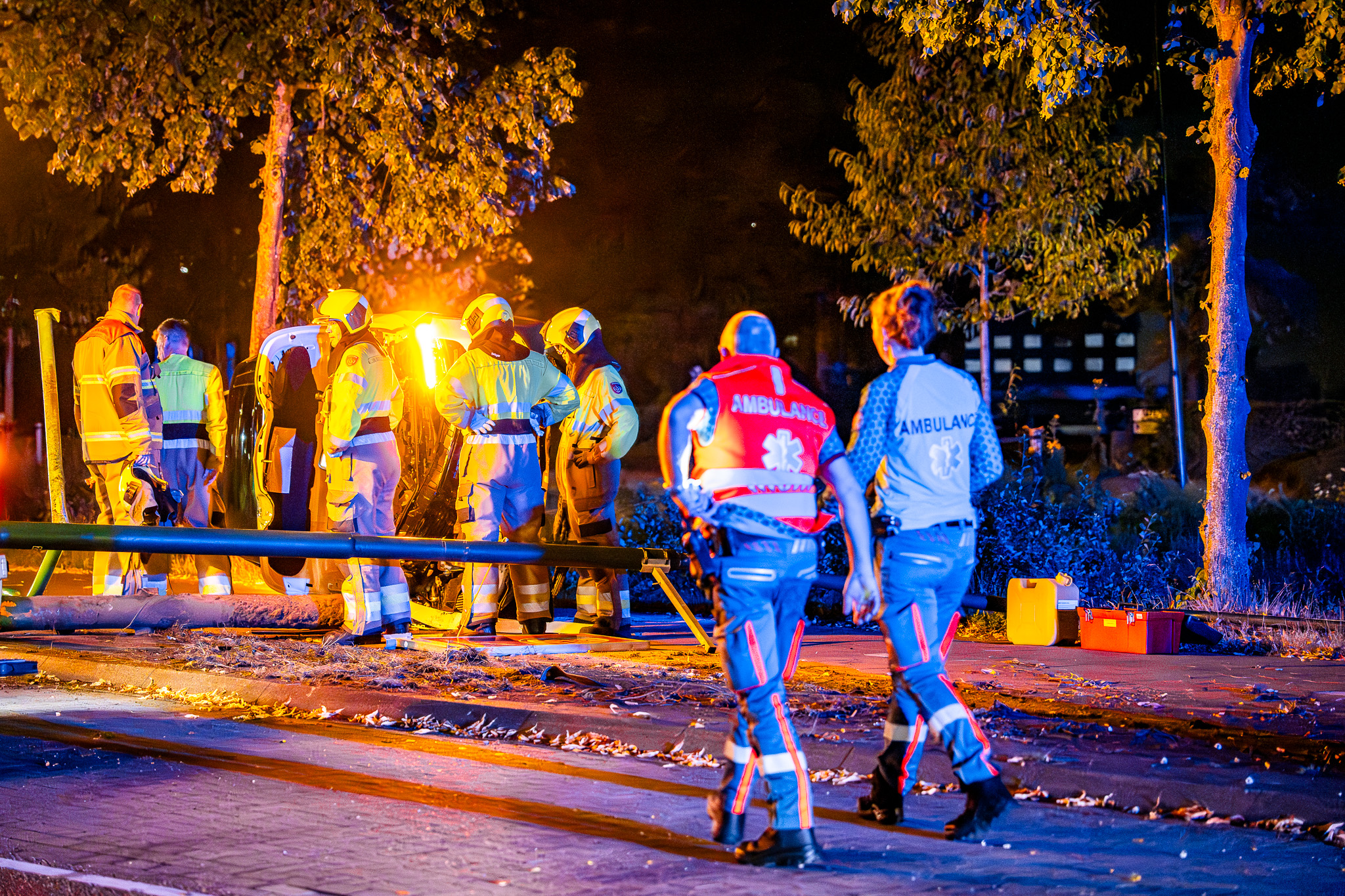 Eén persoon is met onbekend letsel naar het ziekenhuis gebracht. Of er meer inzittenden waren, is nog niet duidelijk. De politie onderzoekt de oorzaak van het ongeval.