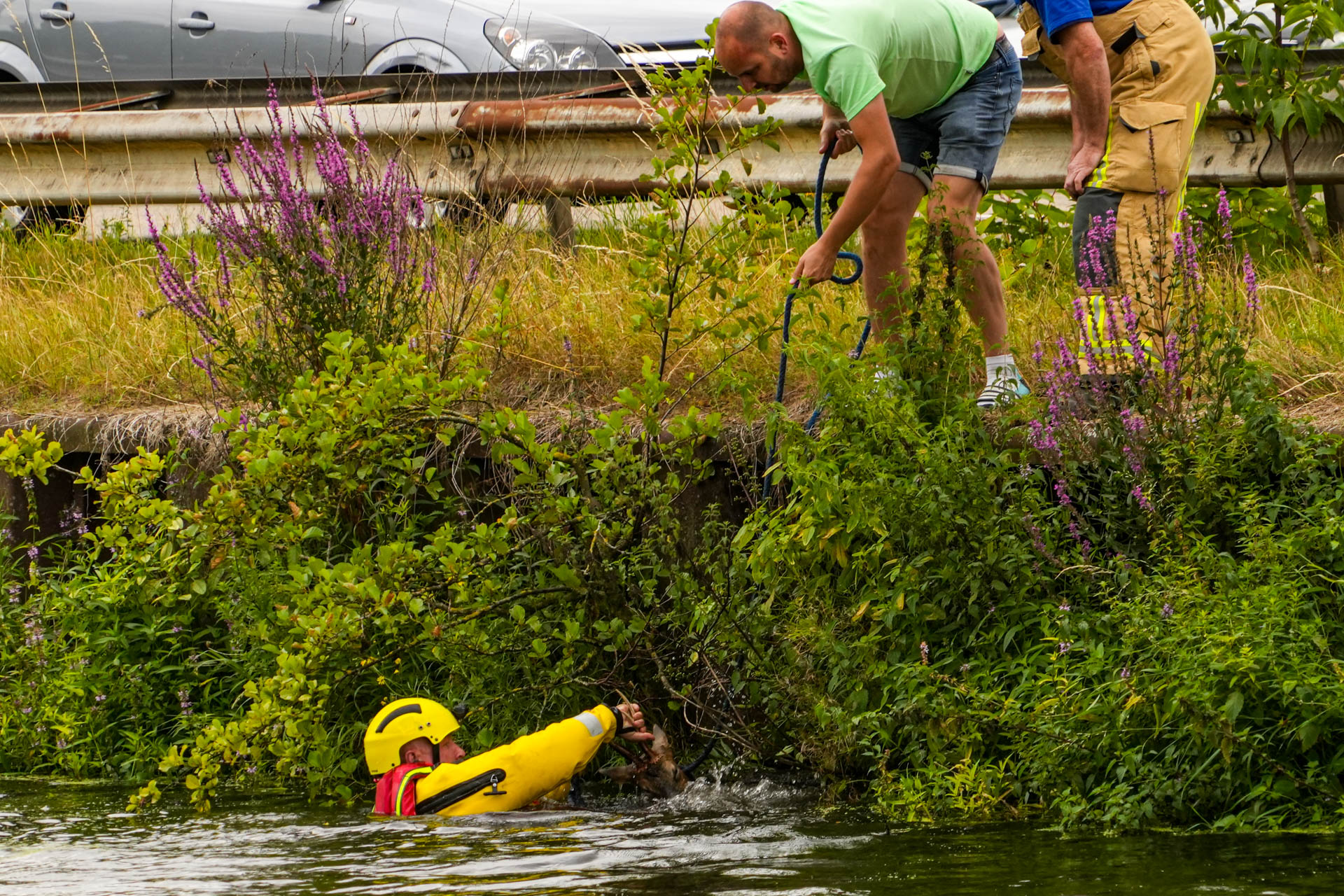 Hulpdiensten, waaronder zwemmers van de brandweer, kwamen rond het middaguur in actie. Ook buurtbewoners hielpen mee bij de reddingspoging. De actie trok veel bekijks en zorgde voor vertraging op de weg, omdat automobilisten kort stopten om het tafereel te aanschouwen.