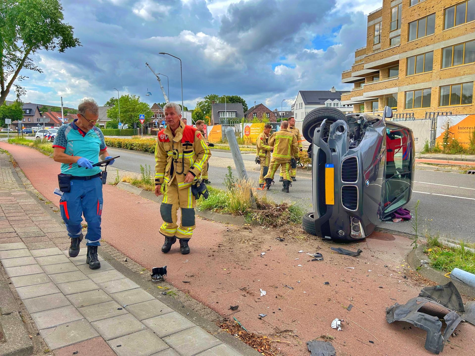 De bestuurster is mogelijk onwel geworden en raakte daardoor een paaltje, waarna het voertuig kantelde. Het ongeval gebeurde vlak voor de brandweerkazerne, waardoor hulpdiensten snel ter plaatse waren.