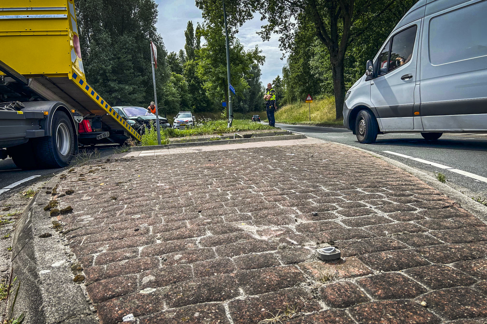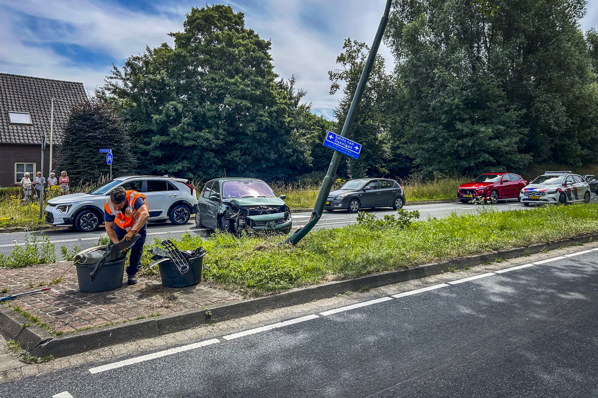 Automobiliste raakt van de weg en botst tegen lantaarnpaal
