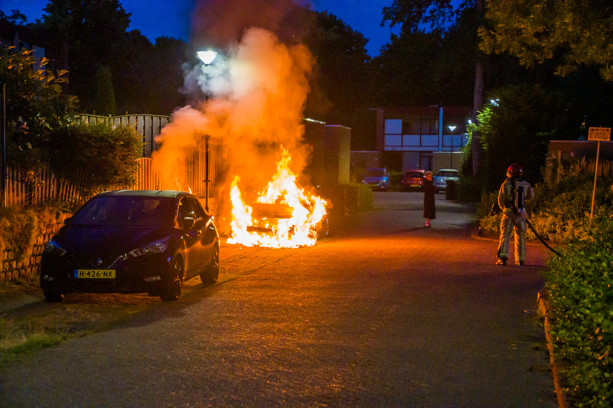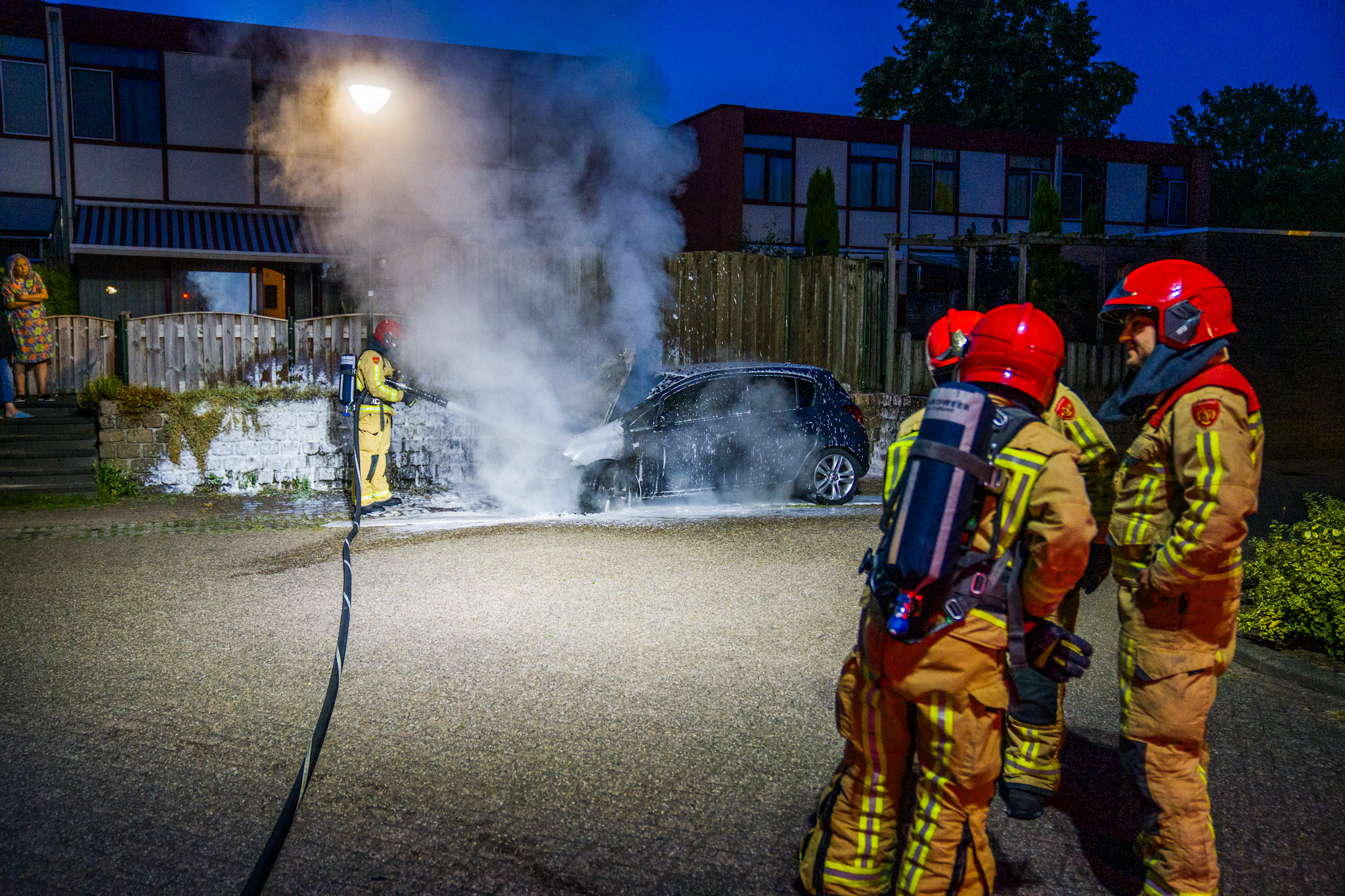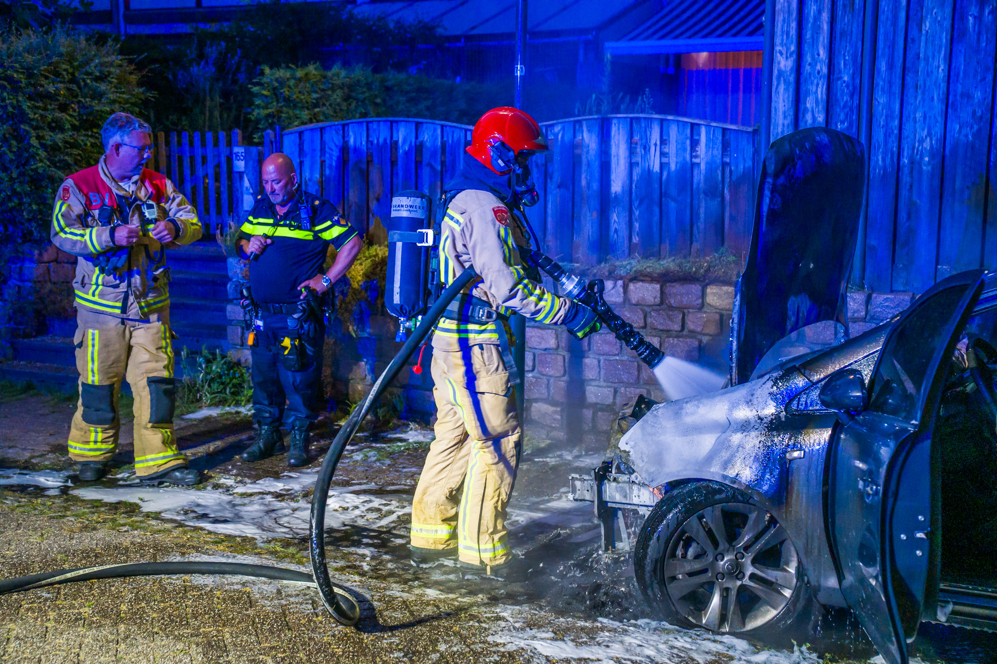 De melding van de brand kwam rond 04.45 uur binnen. De brandweer was snel ter plaatse en wist het vuur te blussen, maar het voertuig kon niet meer worden gered. De auto brandde volledig uit.