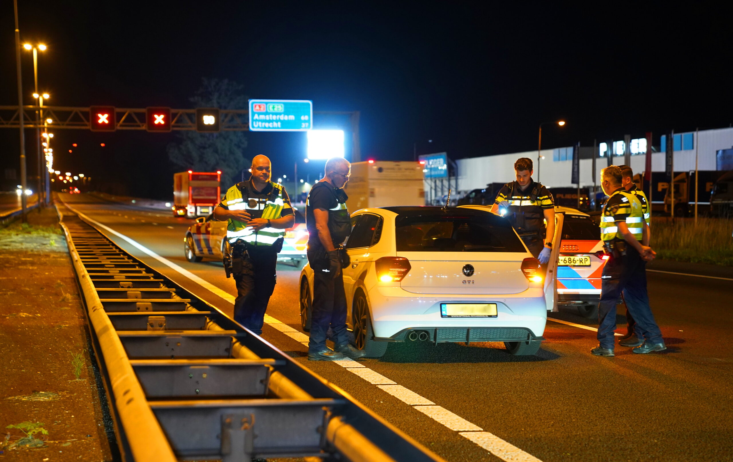 De bestuurder bleek onder invloed te zijn, beschikte niet over een geldig rijbewijs en reed gevaarlijk. In de kofferbak van het voertuig werd een taser aangetroffen. De bijrijder kon zich niet legitimeren. Beide mannen zijn meegenomen voor verhoor. De A2 is korte tijd in beide richtingen afgesloten geweest voor onderzoek.