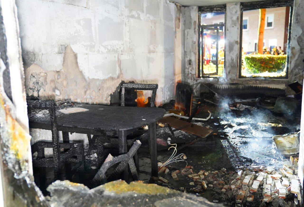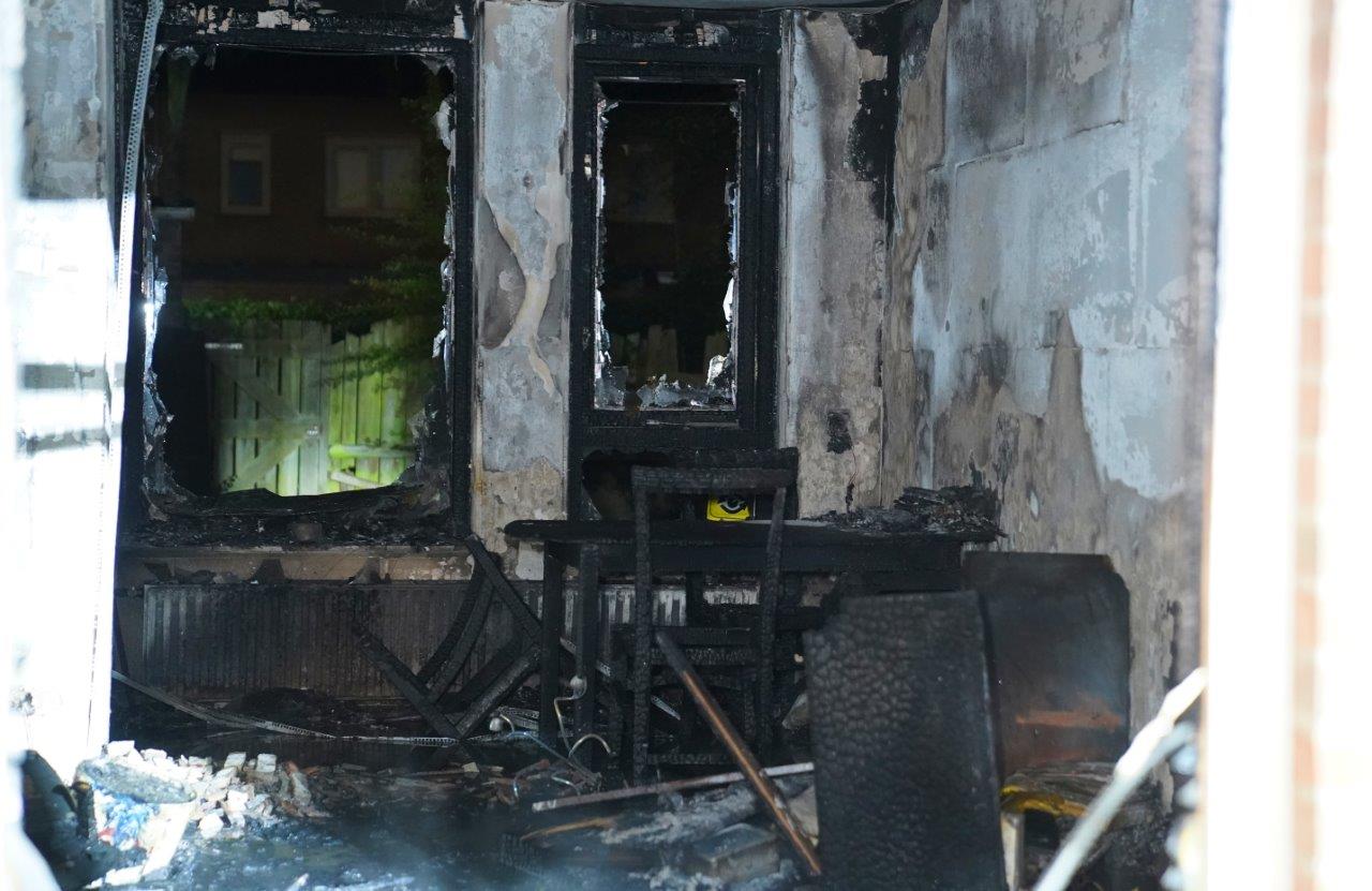 Bij aankomst van de brandweer sloegen de vlammen al uit het huis. De bewoonster kon op tijd naar buiten en bleef ongedeerd, maar haar kat overleefde de brand niet. De volledige benedenverdieping is verwoest en ook de bovenverdieping raakte zwaar beschadigd.