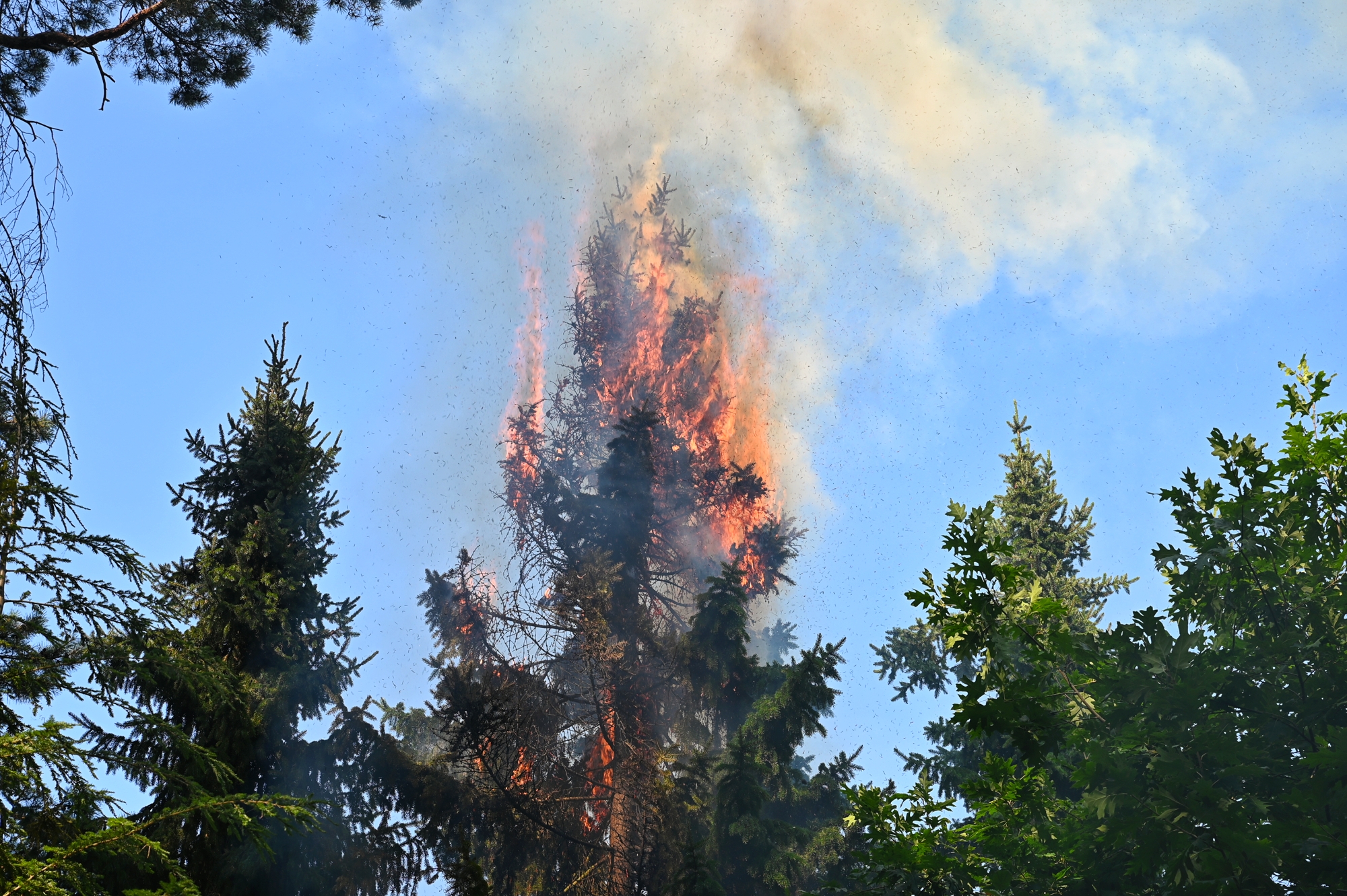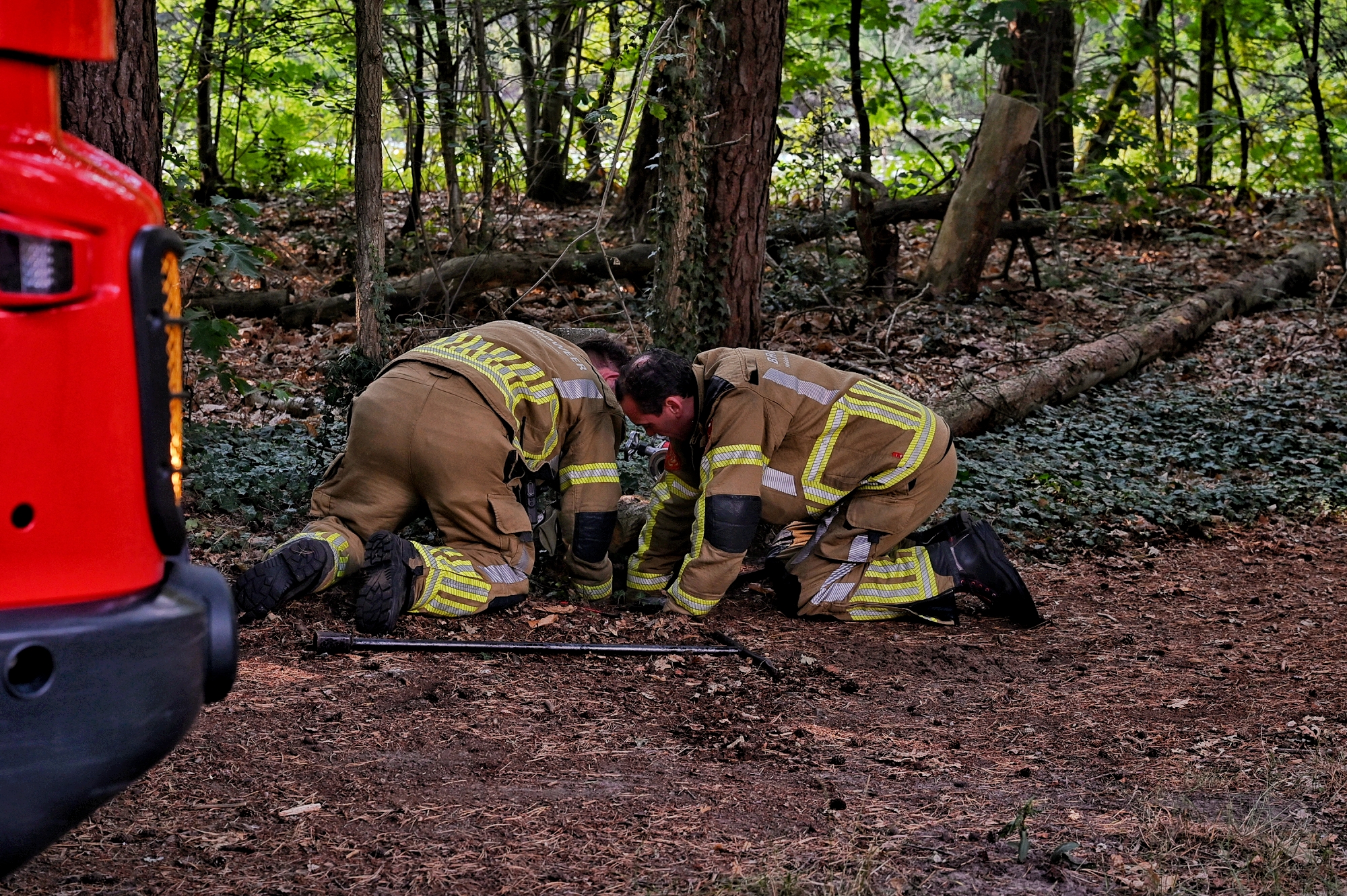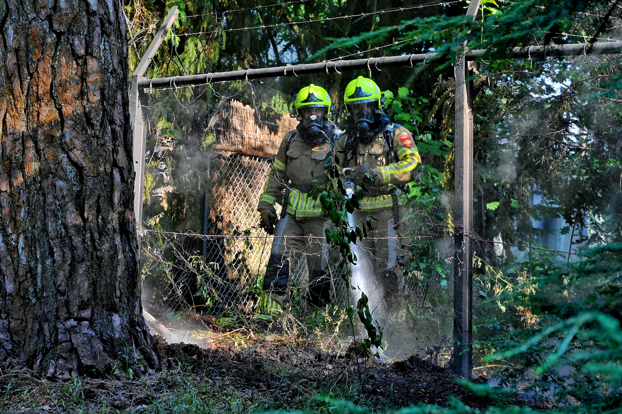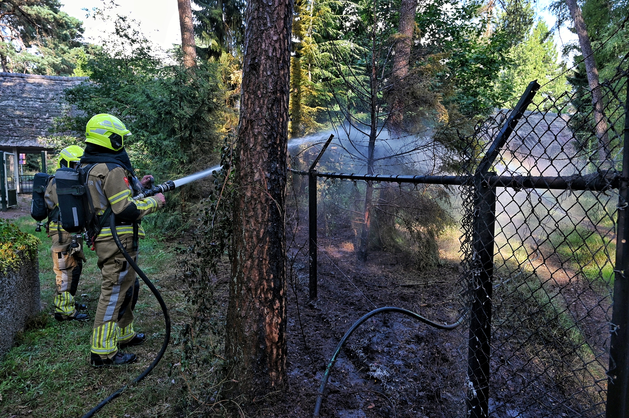 Omdat de getuige geen telefoon bij zich had, werden voorbijgangers op de Vennenlaan aangesproken, waarna direct 112 werd gebeld. De brandweer kwam met spoed ter plaatse. De vlammen sloegen hoog in de bomen, maar een nabijgelegen rietgedekte overkapping van het voormalige zwembad bleef ongedeerd.