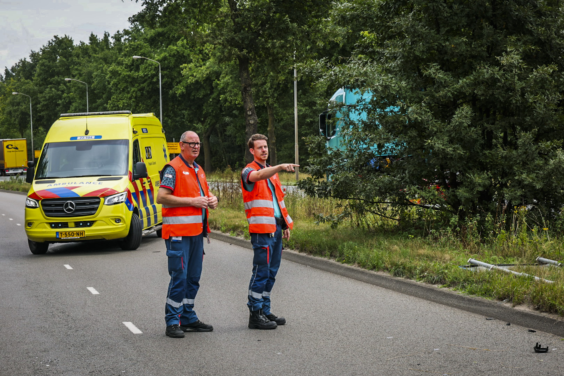 Het ongeval ontstond toen een vrachtwagen van rijbaan wisselde en de personenauto aantikte. De auto raakte daardoor van de weg, kwam in de berm terecht en sloeg over de kop tegen een verkeersbord. De weg richting de A2 en Eindhoven Airport werd tijdelijk volledig afgesloten. Inmiddels is één rijbaan weer beschikbaar voor verkeer.