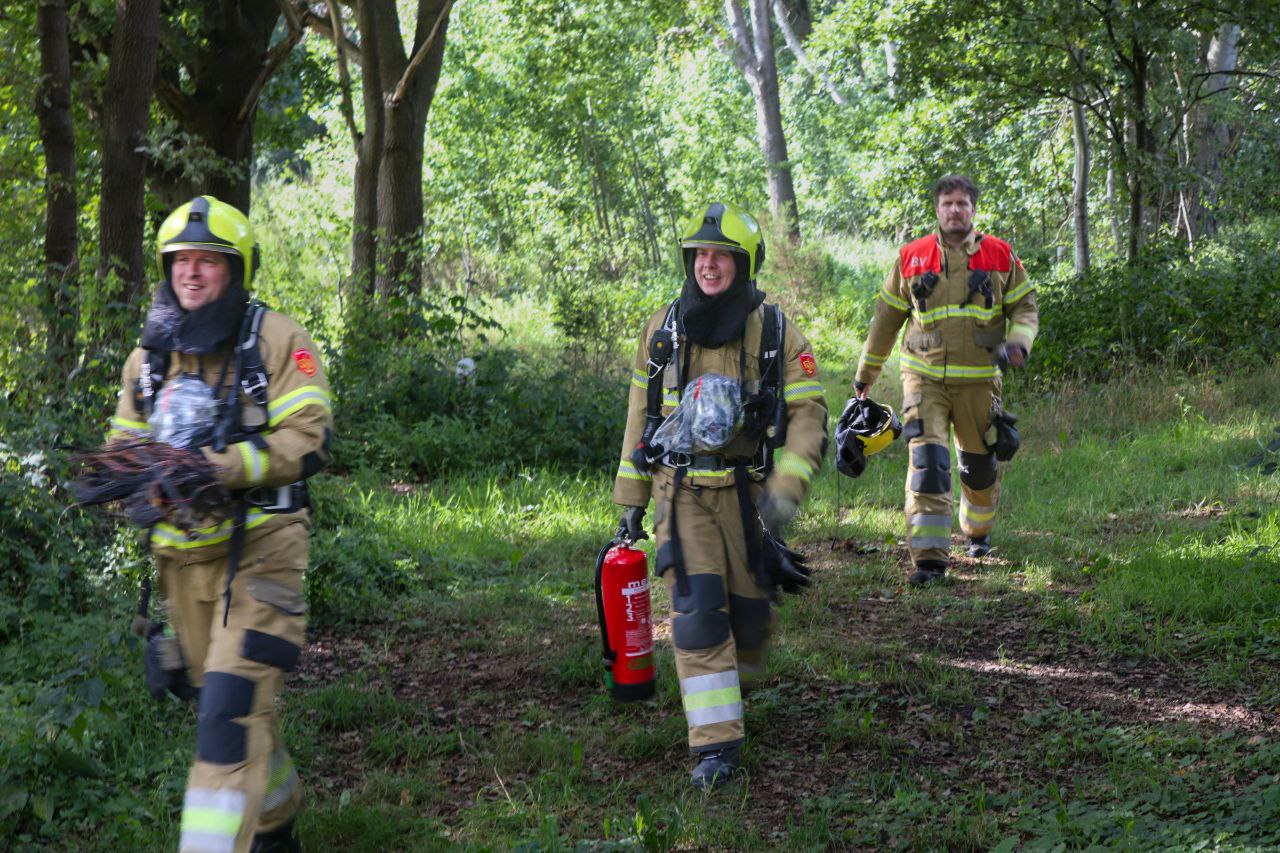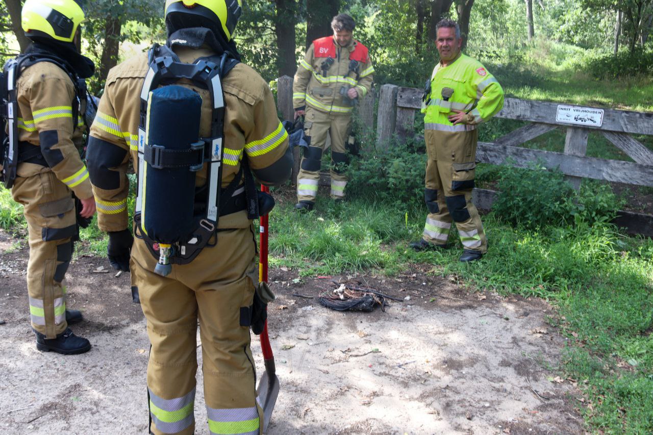 Eenmaal op locatie bleek het niet om een bosbrand te gaan, maar om brandend koper dat bewust was aangestoken. De brandweer heeft het koper meegenomen en ter plekke afgeblust.