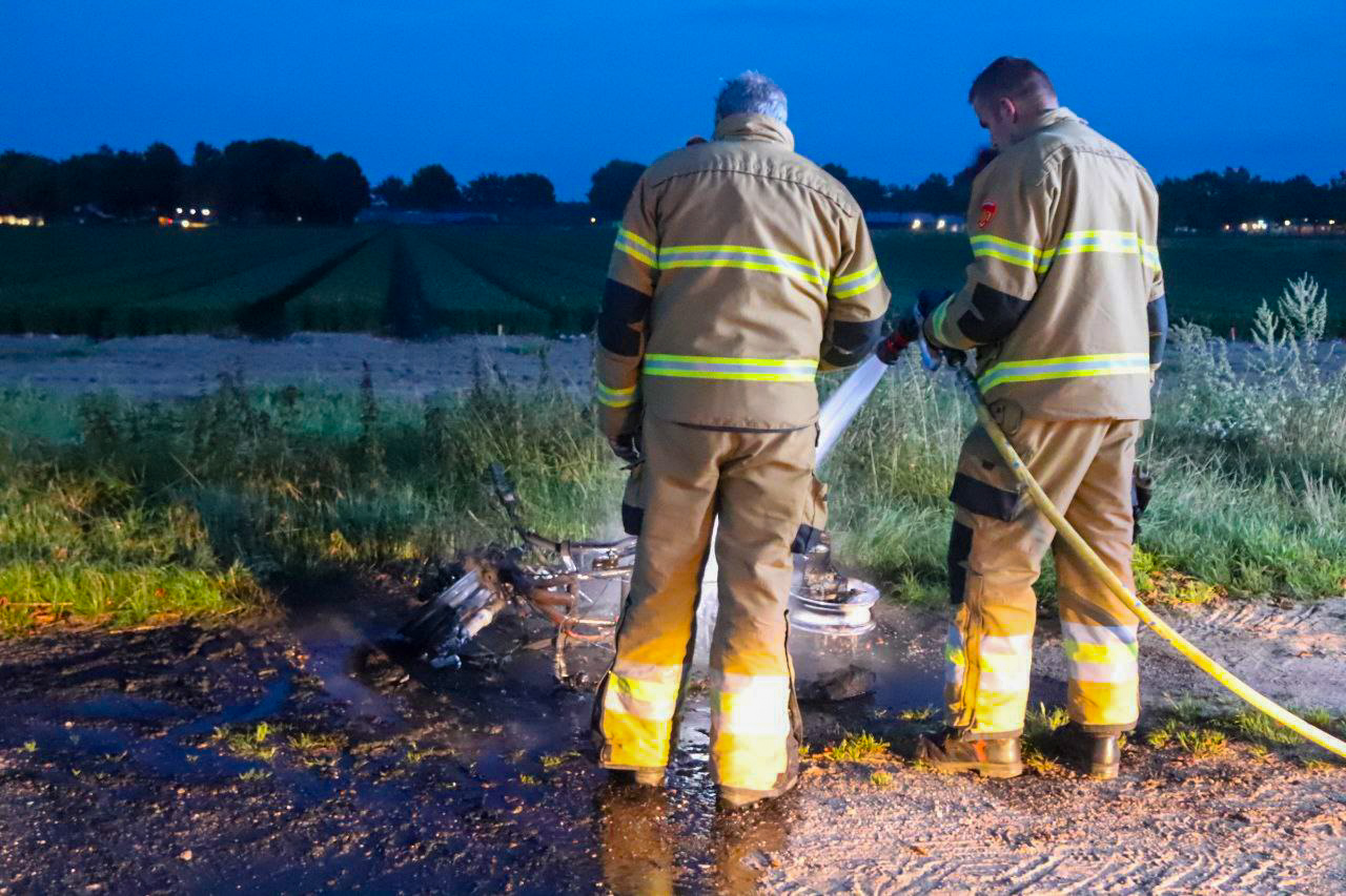 BERGHEM – Woensdagavond is een scooter in brand gevlogen aan de Kruiwagenstraat in Berghem. Bij aankomst van de brandweer stond het voertuig al volledig in lichterlaaie.
