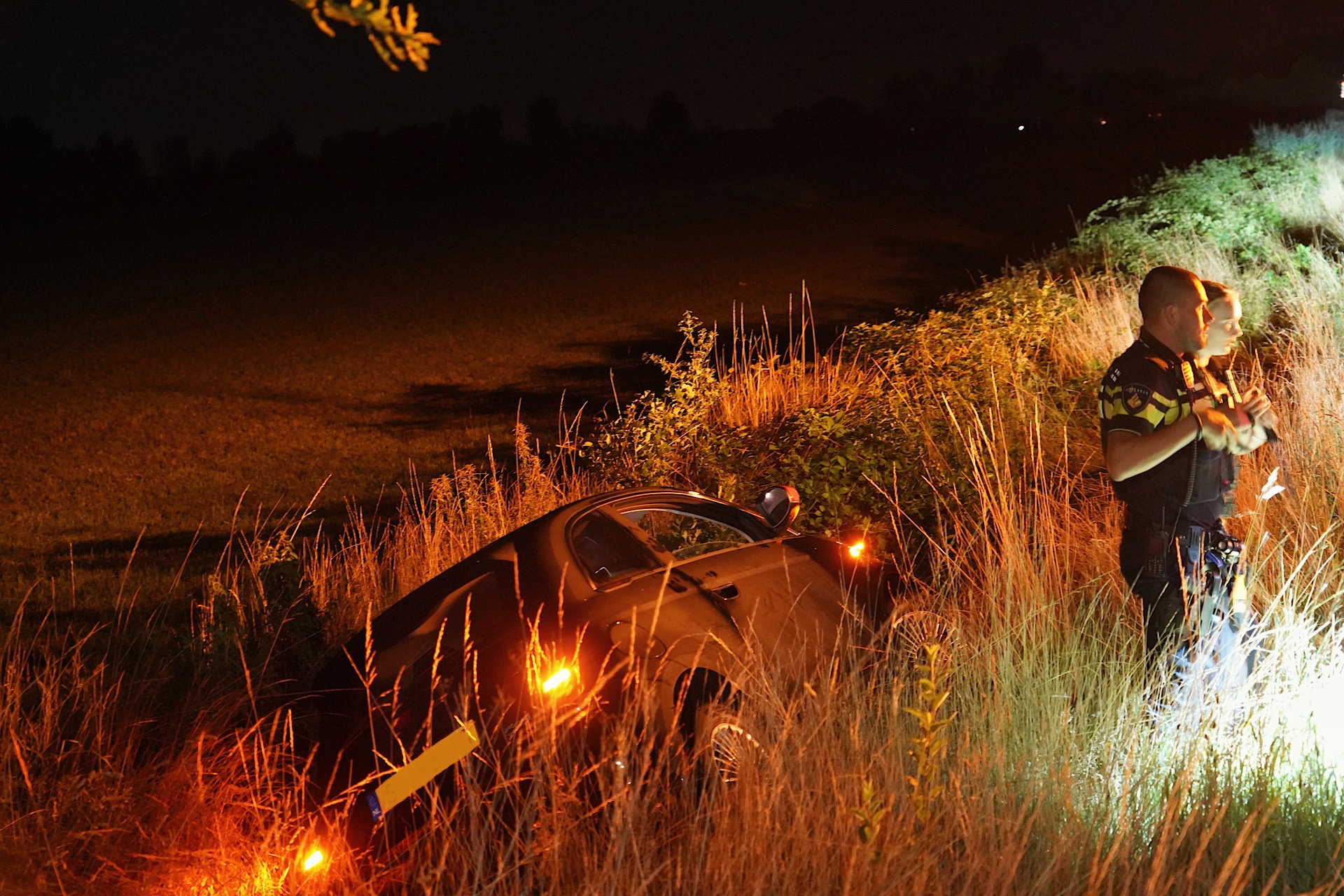 Een bergingsbedrijf heeft de auto uit de sloot gehaald. De oorzaak van het ongeval wordt onderzocht.
