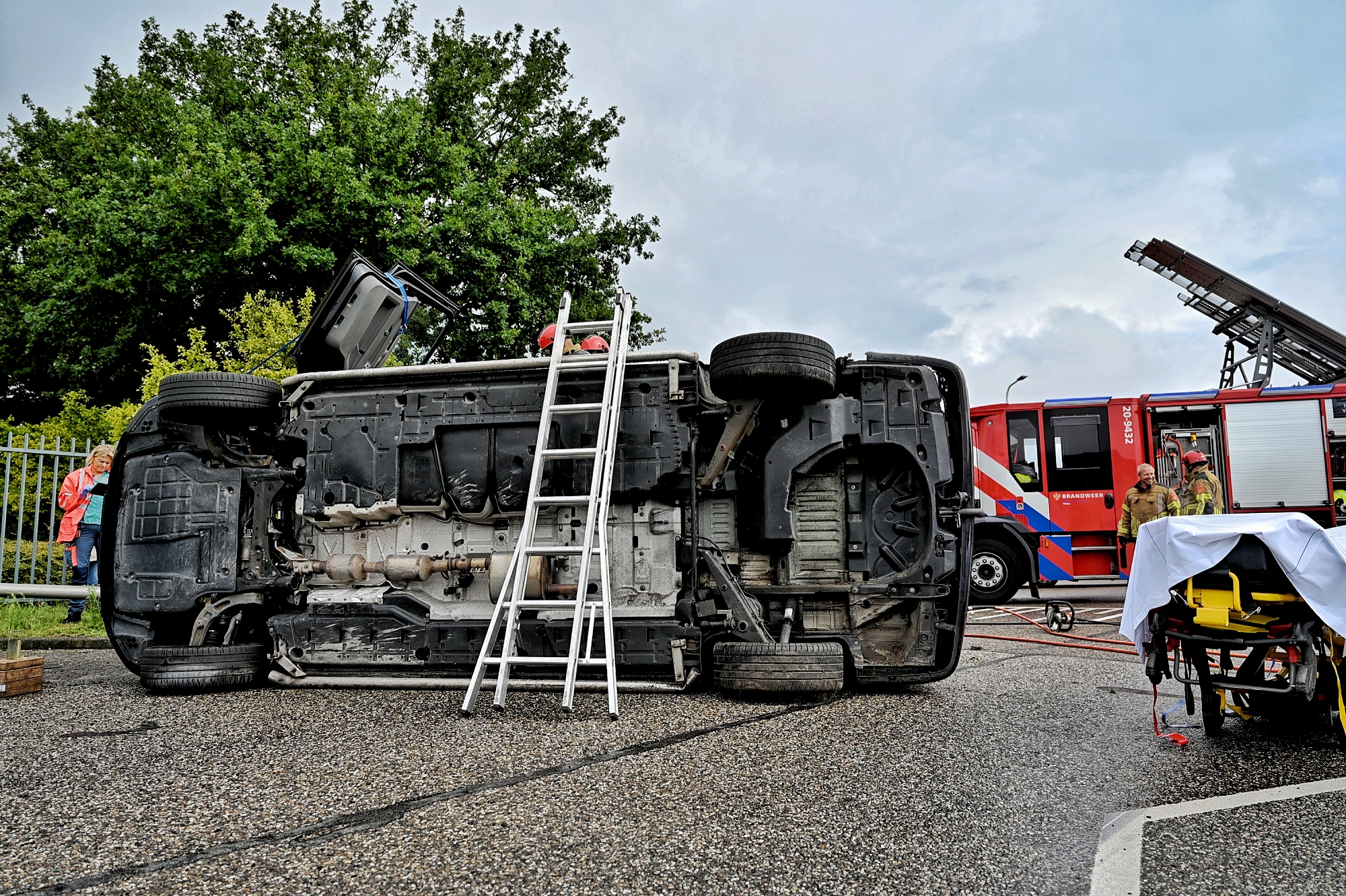 Het ongeval gebeurde in de ochtenduren op de kruising Brakman met Kranenberg. Brandweer, politie en ambulance waren snel ter plaatse. De bestuurder van het gekantelde busje raakte bekneld en moest door de brandweer met behulp van redgereedschap worden bevrijd. Hij is via de uitgezaagde voorruit uit het voertuig gehaald en met onbekend letsel per ambulance vervoerd.