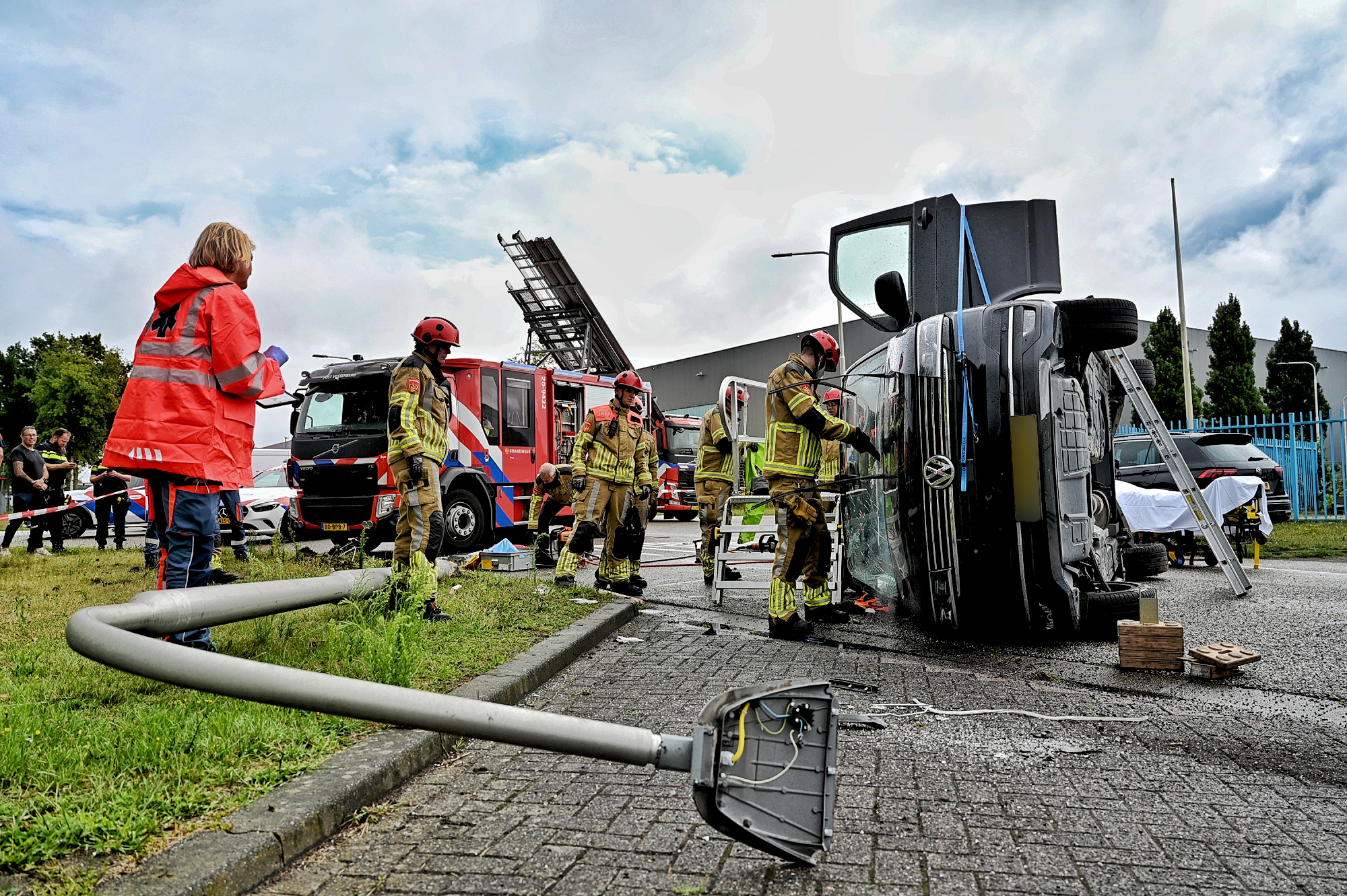 Het ongeval gebeurde in de ochtenduren op de kruising Brakman met Kranenberg. Brandweer, politie en ambulance waren snel ter plaatse. De bestuurder van het gekantelde busje raakte bekneld en moest door de brandweer met behulp van redgereedschap worden bevrijd. Hij is via de uitgezaagde voorruit uit het voertuig gehaald en met onbekend letsel per ambulance vervoerd.