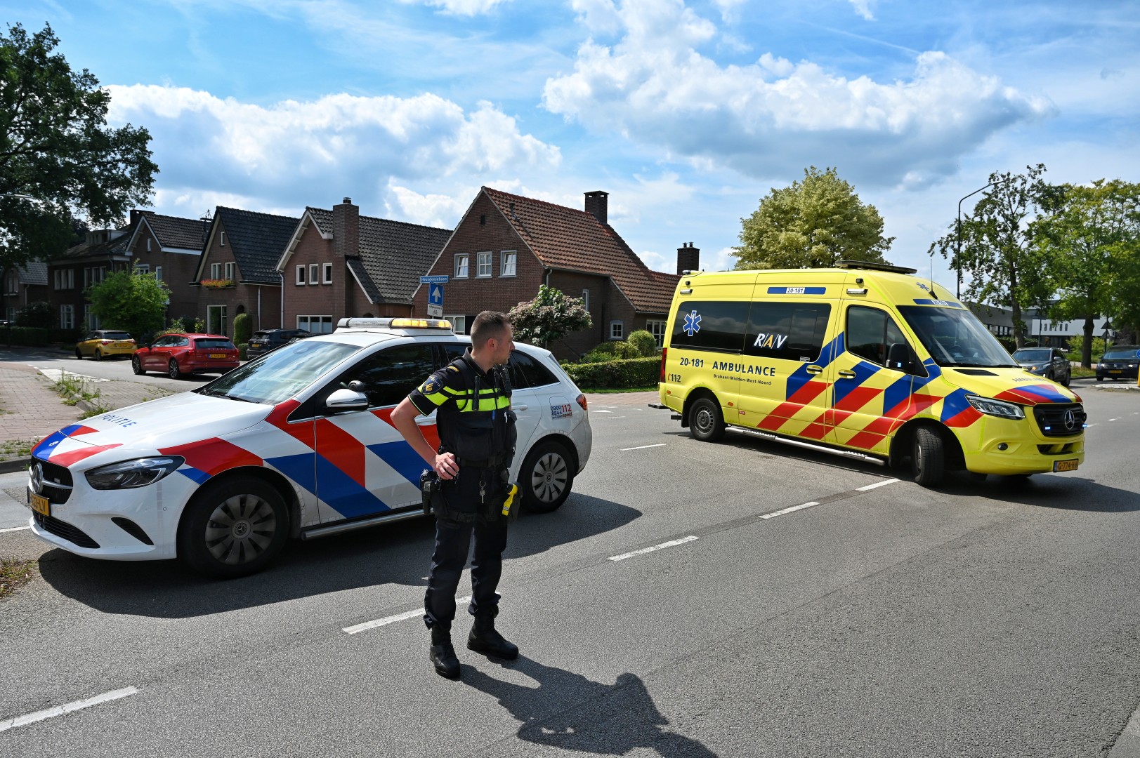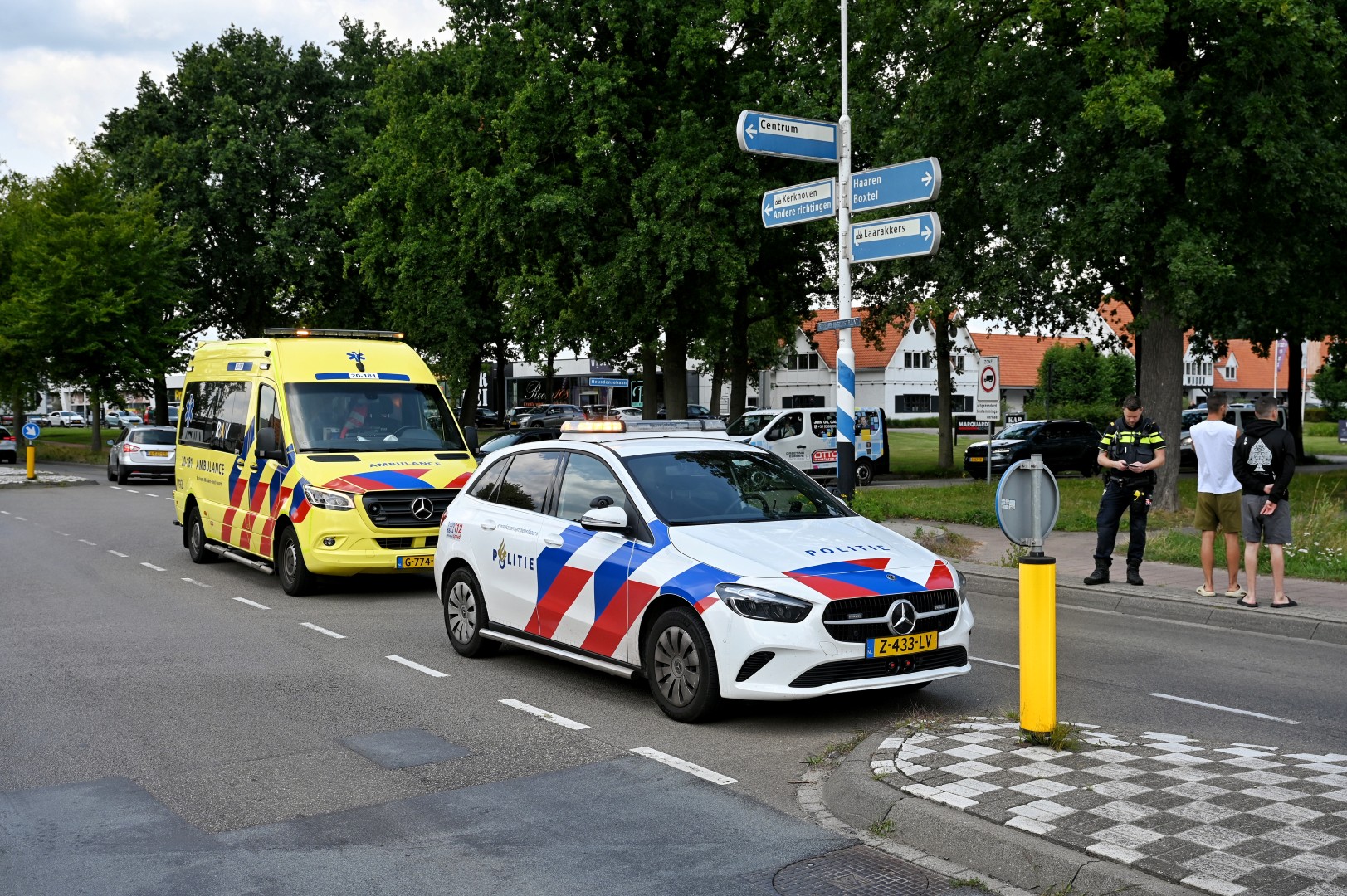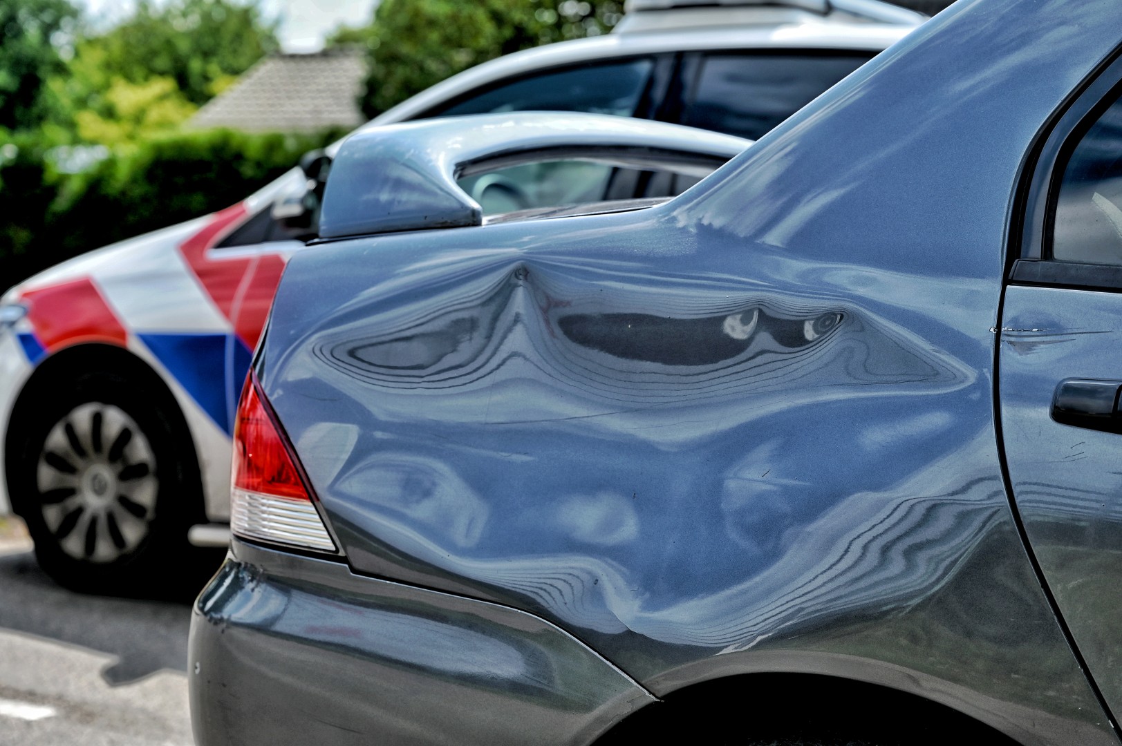 Omstanders hoorden een harde klap en schoten direct te hulp. De auto liep door de botsing een flinke deuk op in de zijkant, terwijl het voorwiel van de fiets zwaar beschadigd raakte. De automobilist remde krachtig, wat resulteerde in zichtbare remsporen op het wegdek.