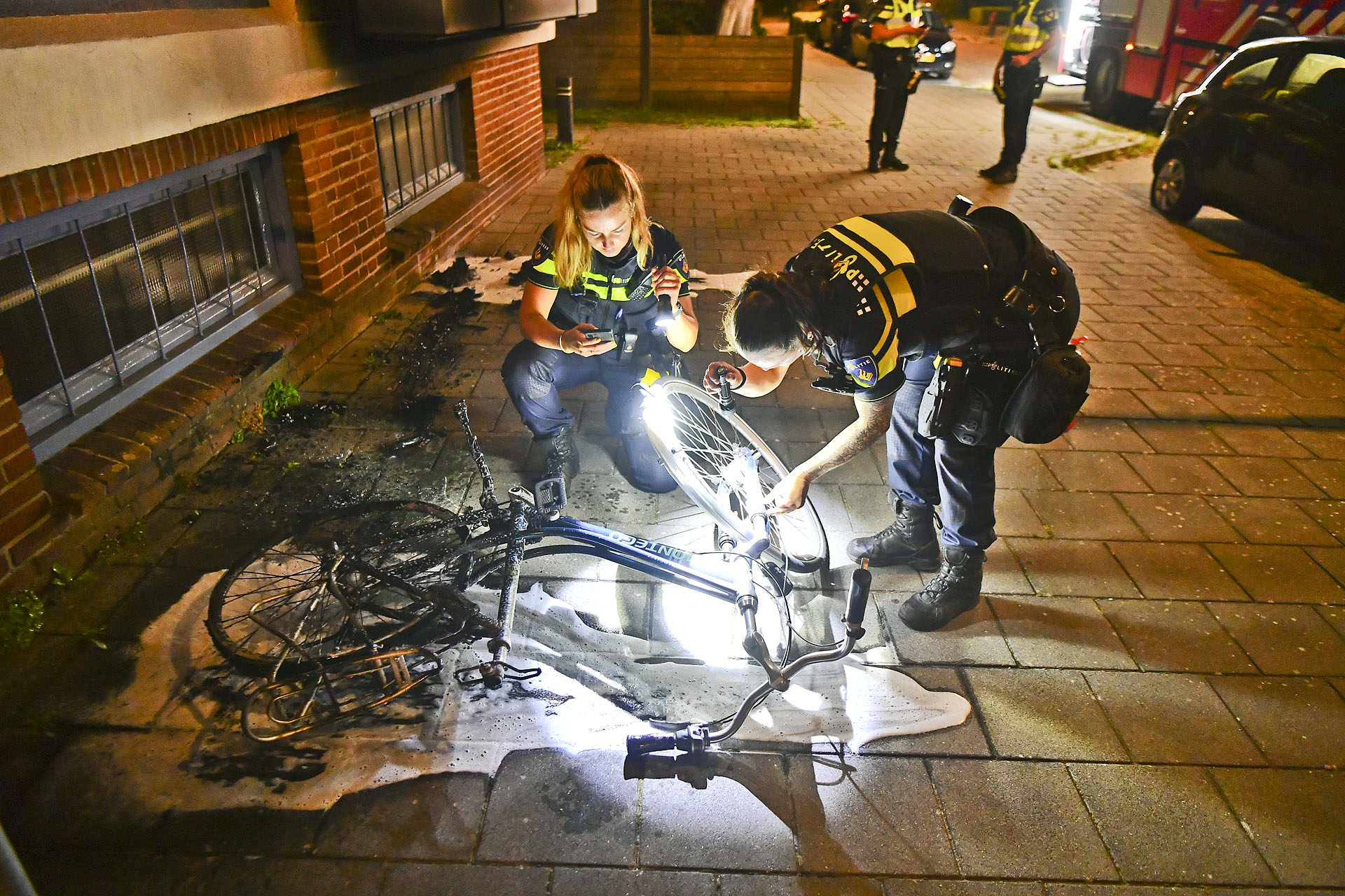 De fiets stond tegen een laag balkon en een kelderraam. Het balkon liep roetschade op. De politie was met drie voertuigen sneller ter plaatse dan de brandweer en bluste het vuur met een brandblusser.