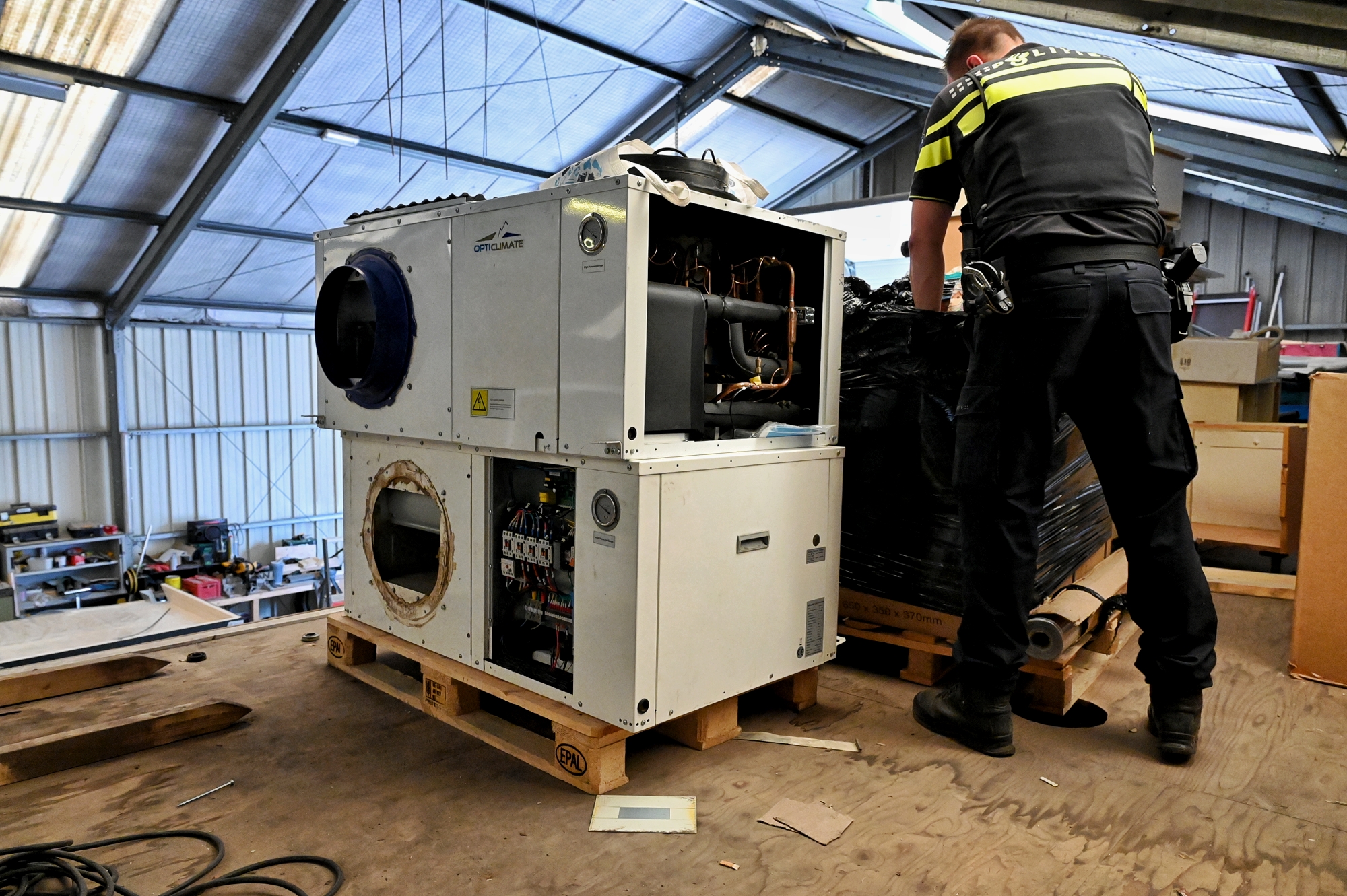 Na een tip uit het buitenland trof de politie in de loods onder meer levensgevaarlijke waterstofgascilinders en enkele vaten met zuur aan. Deze stoffen worden gebruikt bij de productie van MDMA.