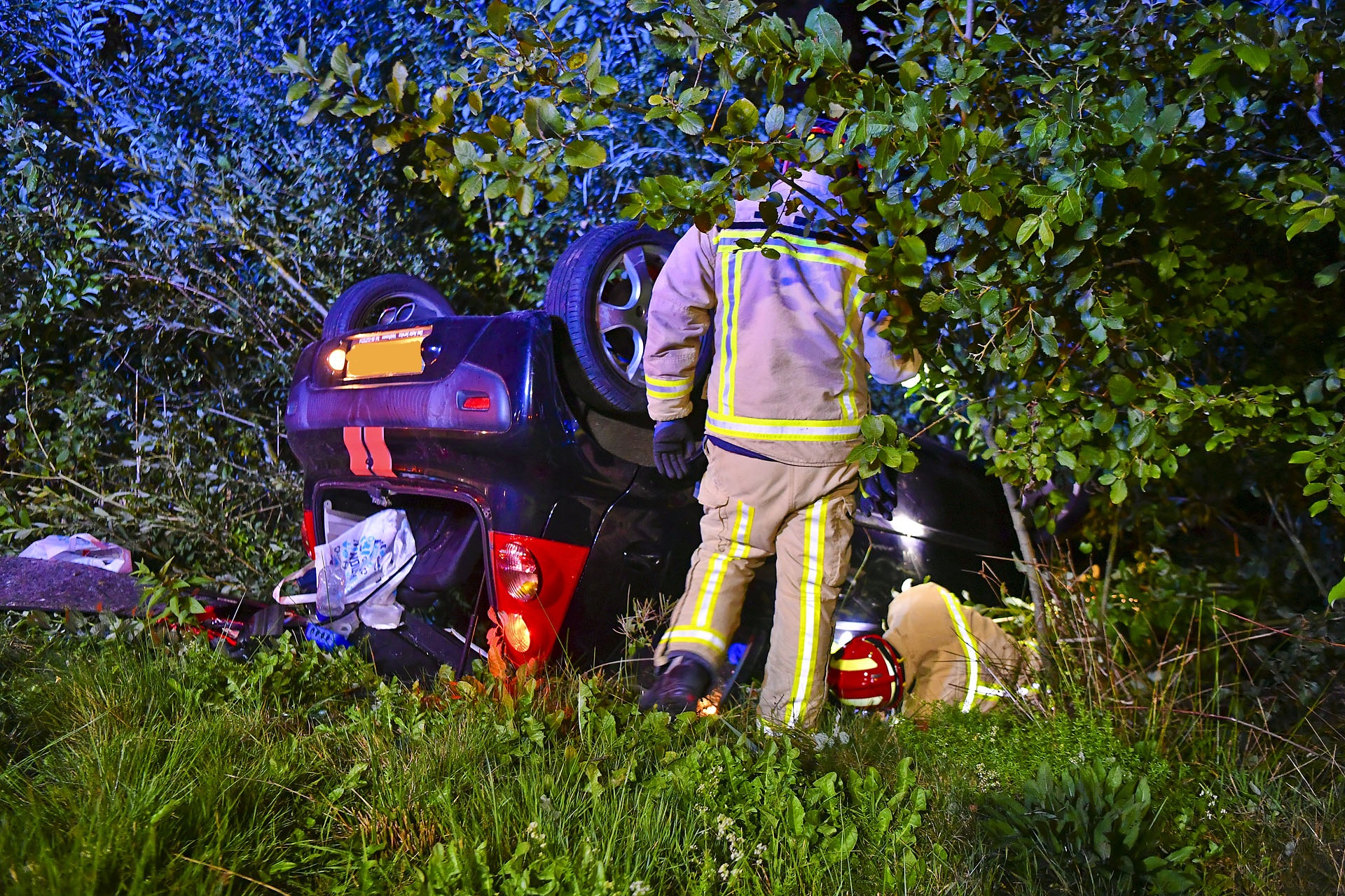 De bestuurder belandde met zijn voertuig in de berm, waarna de auto ondersteboven in een sloot tot stilstand kwam. Passanten schoten te hulp, en de man wist zelfstandig en ogenschijnlijk zonder verwondingen uit de auto te komen.