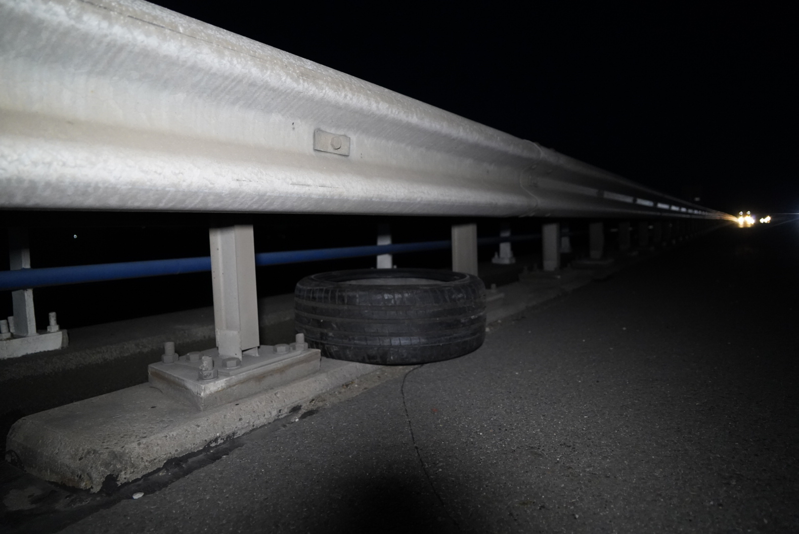 Ondanks de impact raakte niemand gewond. Het wiel kwam enkele honderden meters verderop in de vangrail terecht.