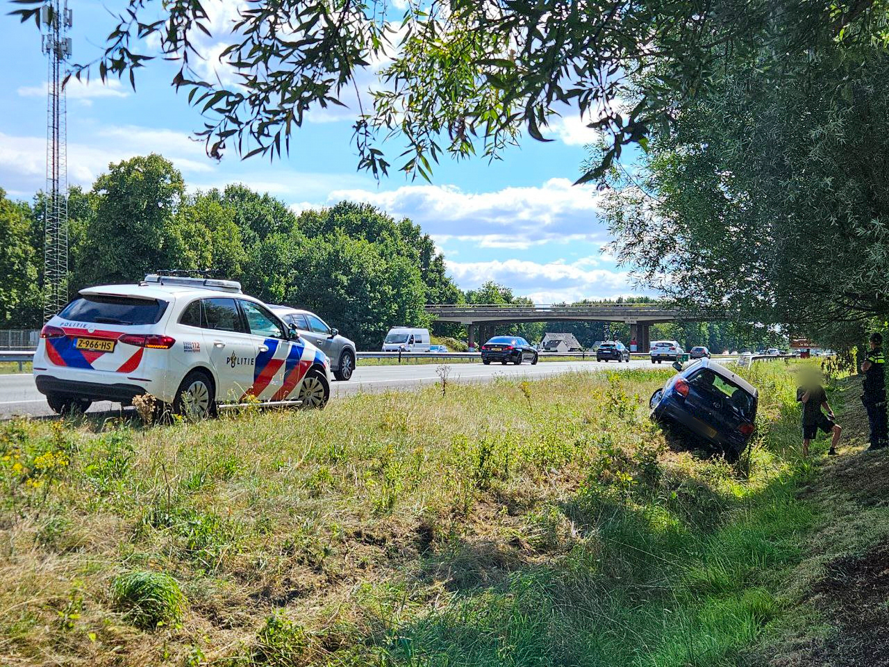 Auto raakt van snelweg; bestuurder aangehouden voor rijden onder invloed