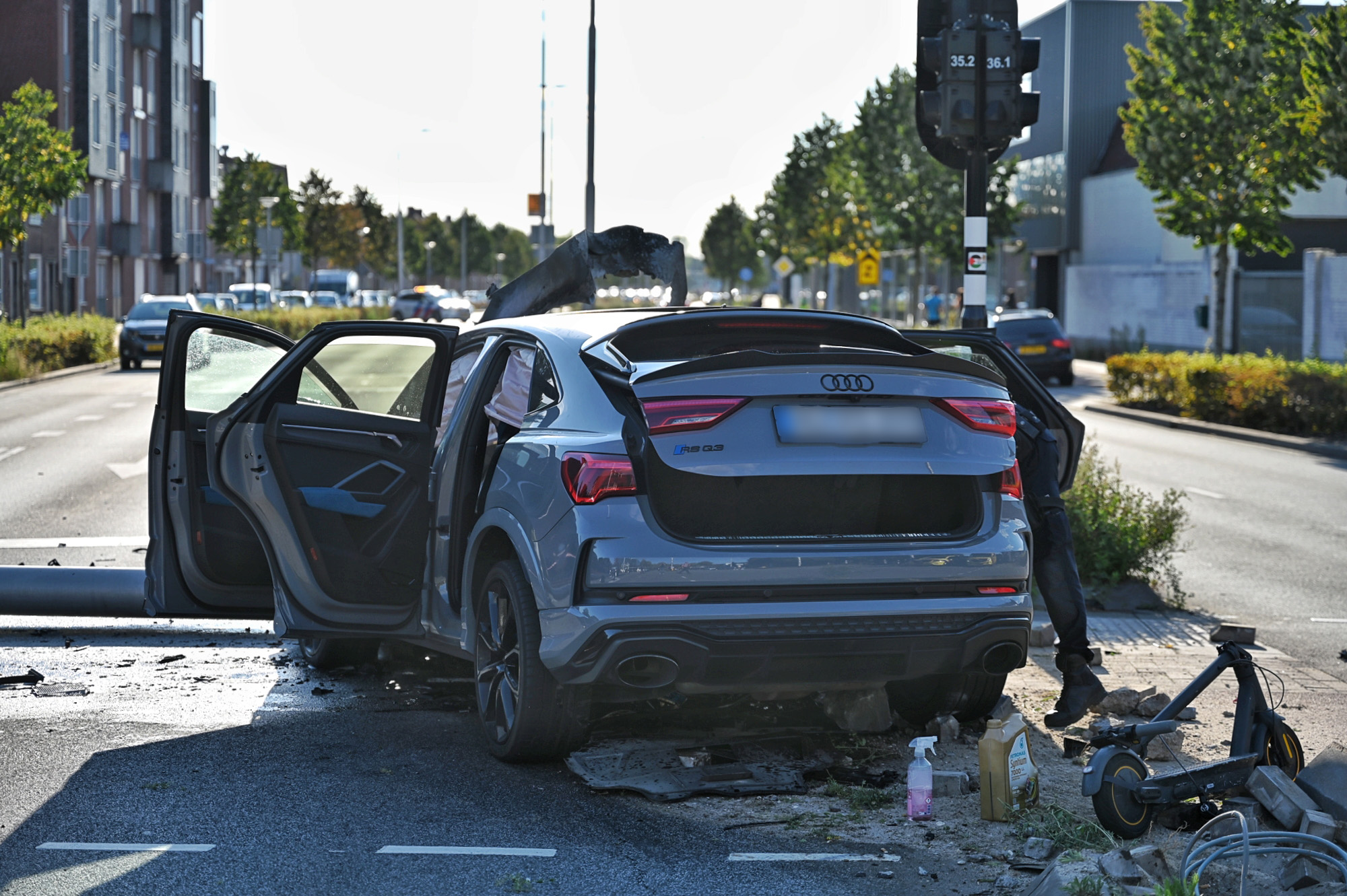 Duitse huurauto crasht tegen lantaarnpaal en vliegt in brand