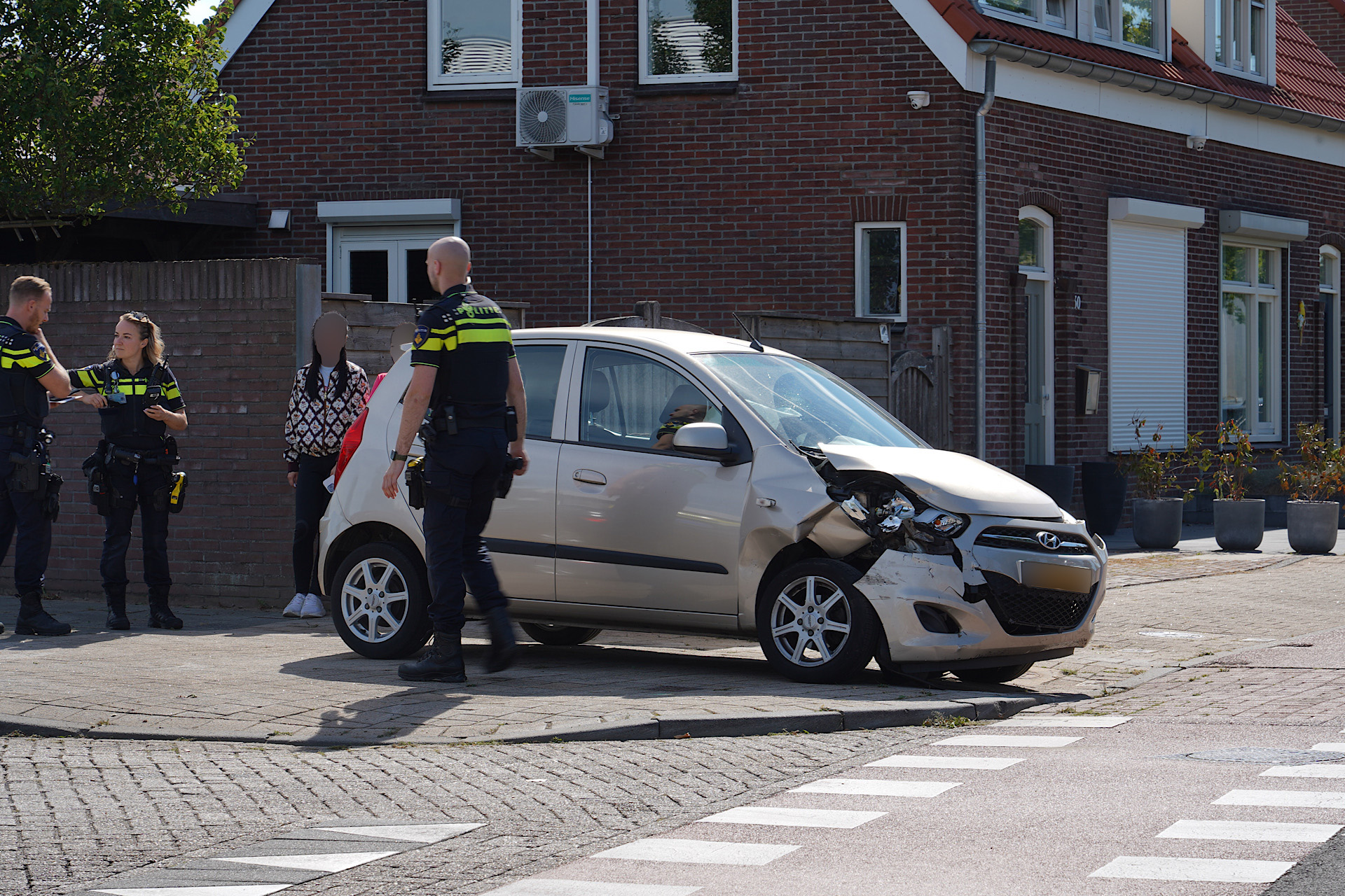 De kruising was korte tijd deels geblokkeerd door de beschadigde voertuigen. Een bergingsbedrijf heeft de auto’s afgevoerd.