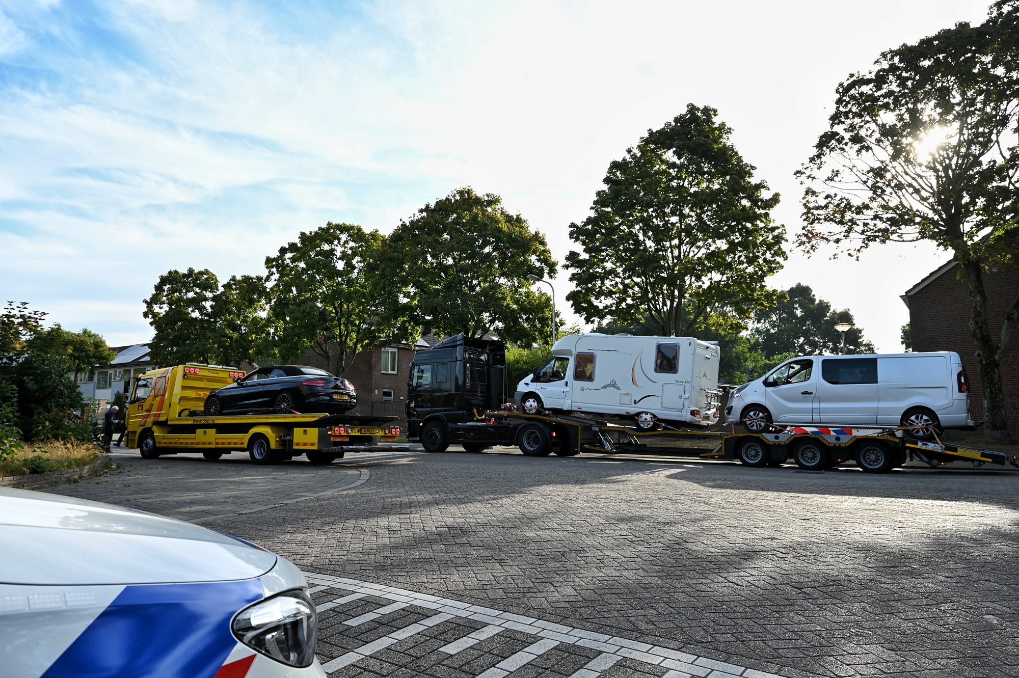 Bij de actie waren zeker acht politievoertuigen aanwezig. Agenten forceerden de voordeur om binnen te komen. Ook een deurwaarder en een speciaal politieteam met een geldhond waren aanwezig. Of er contant geld is aangetroffen, is nog niet bekend. In beslag genomen voertuigen betreffen onder meer twee auto’s, een bestelbus, een motor en een camper. De actie trok veel bekijks in de straat.