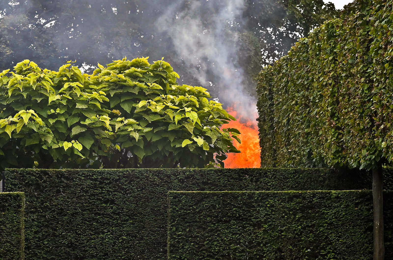 Toen even later zwarte rook zichtbaar werd, werd de brandweer gealarmeerd. Een tankautospuit uit Eersel en een watertankwagen uit Bergeijk werden ingezet om het vuur te blussen.
