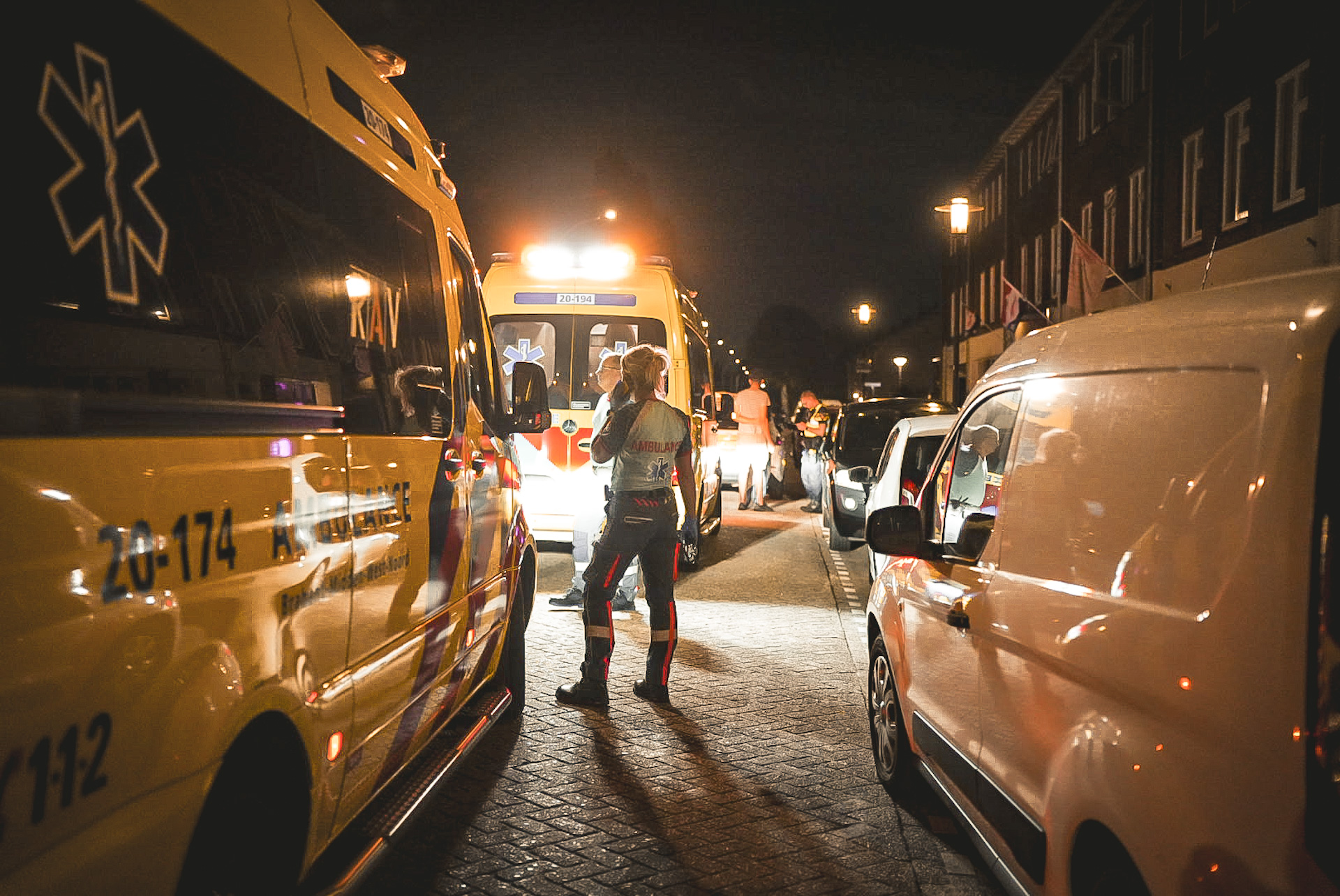 Twee ambulances en meerdere politie-eenheden kwamen ter plaatse. De slachtoffers zijn na behandeling naar het ziekenhuis gebracht. Een verdachte is aangehouden en overgebracht naar het politiebureau.