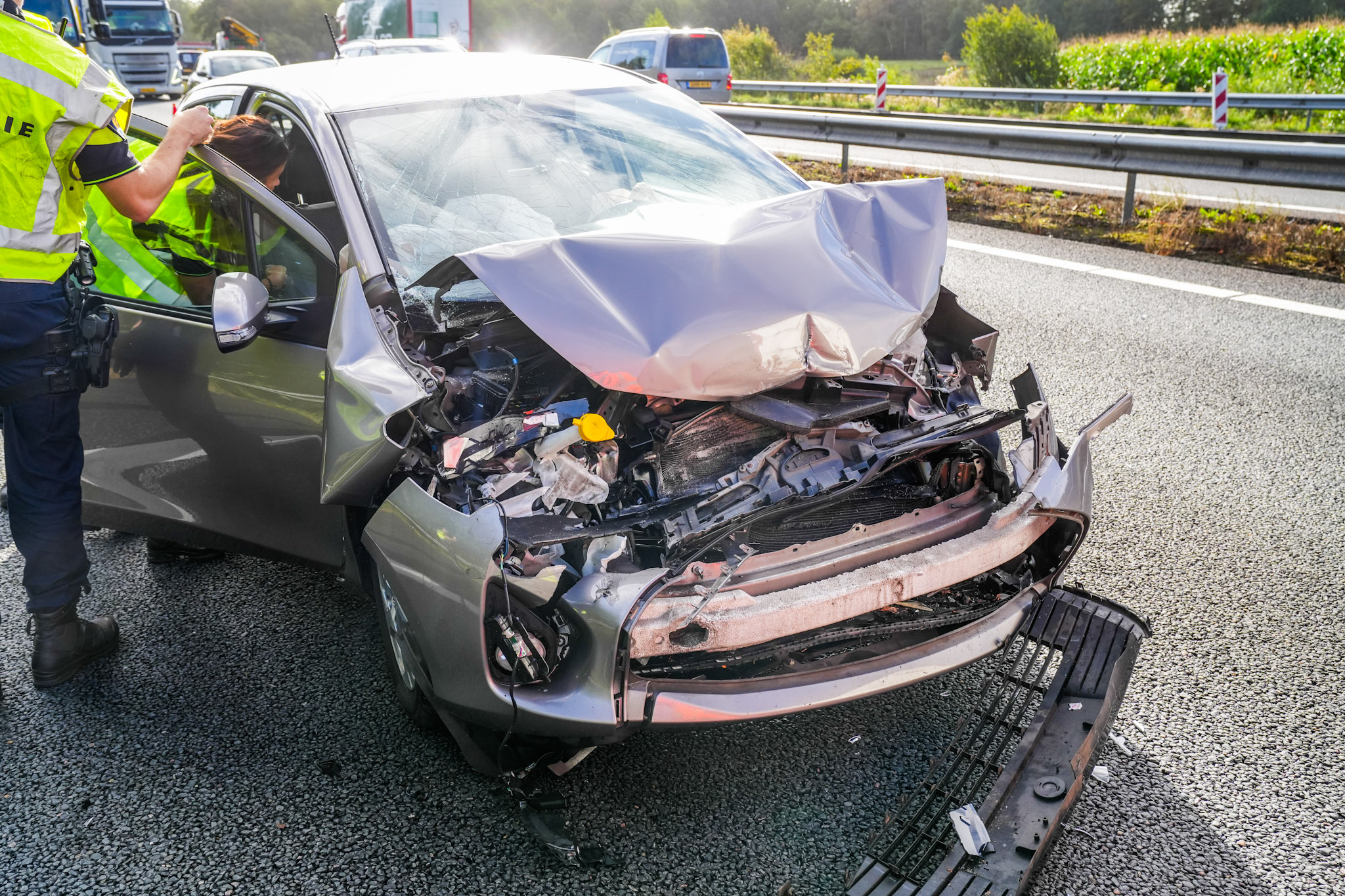 Hulpdiensten, waaronder de politie, ambulance en een verkeersteam van Rijkswaterstaat, kwamen ter plaatse. Een vrouw uit de personenauto is nagekeken in de ambulance, maar hoefde niet naar het ziekenhuis. De auto liep schade op bij de botsing.