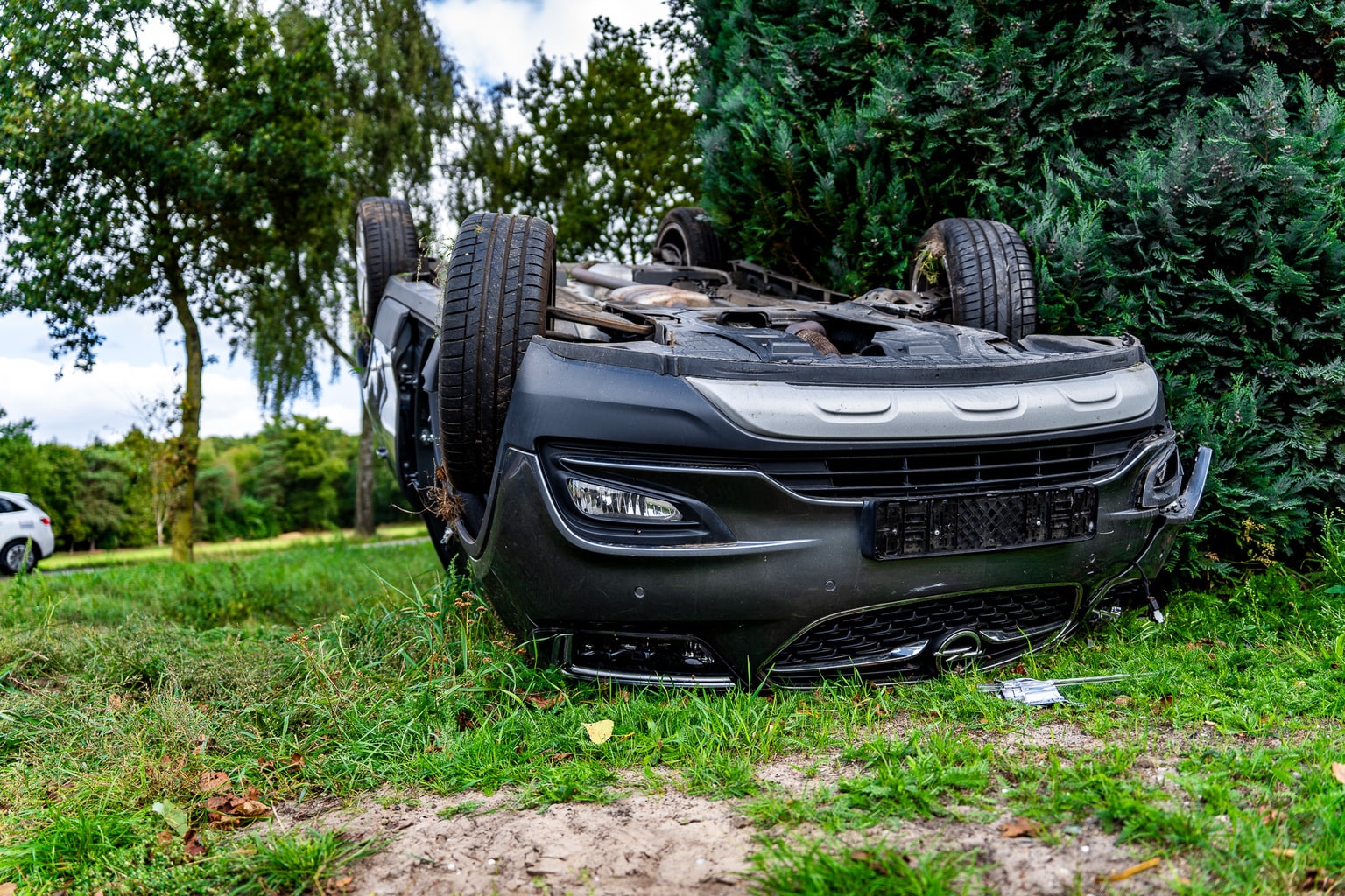 Auto ondersteboven na aanrijding met ander voertuig