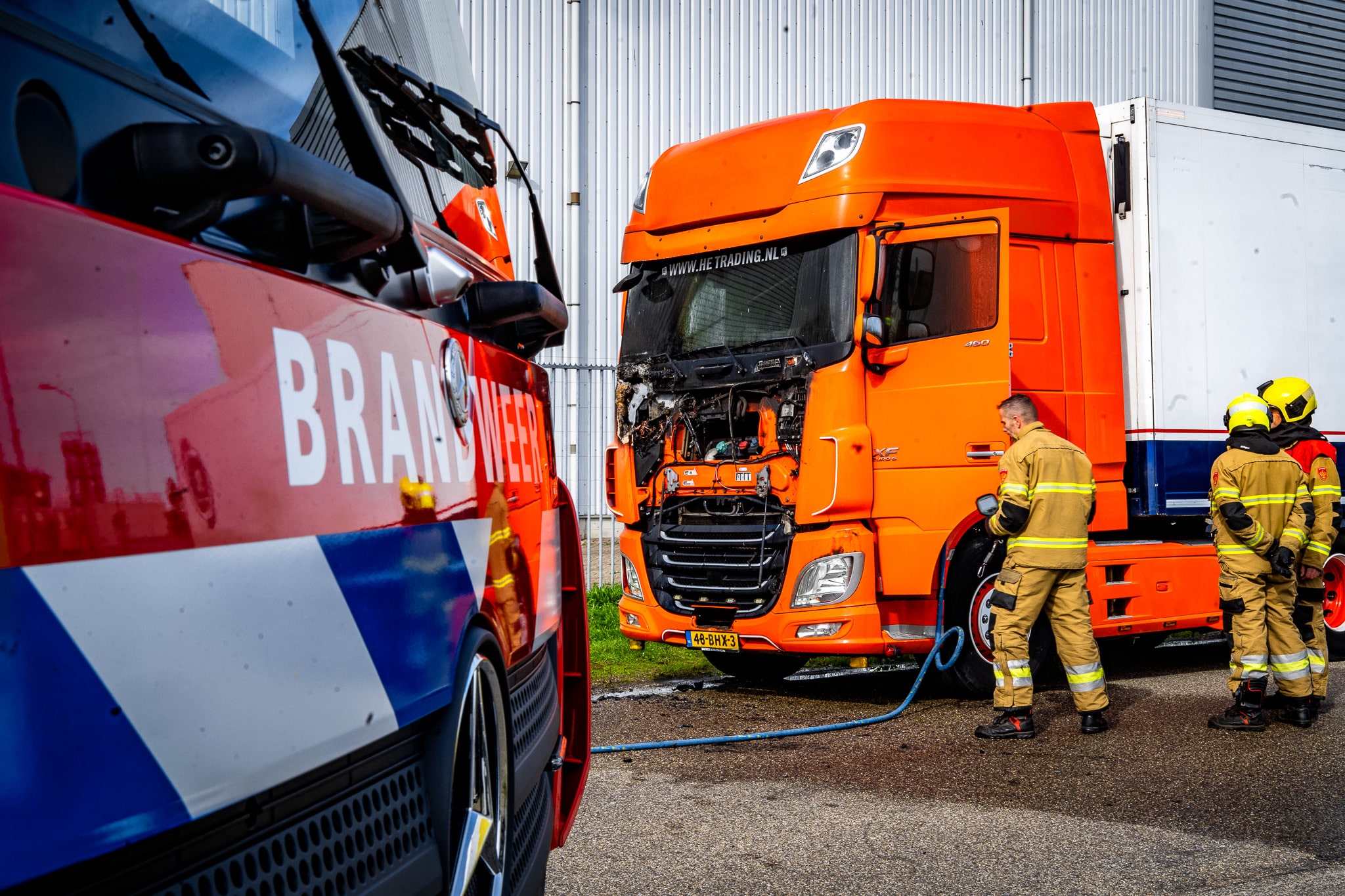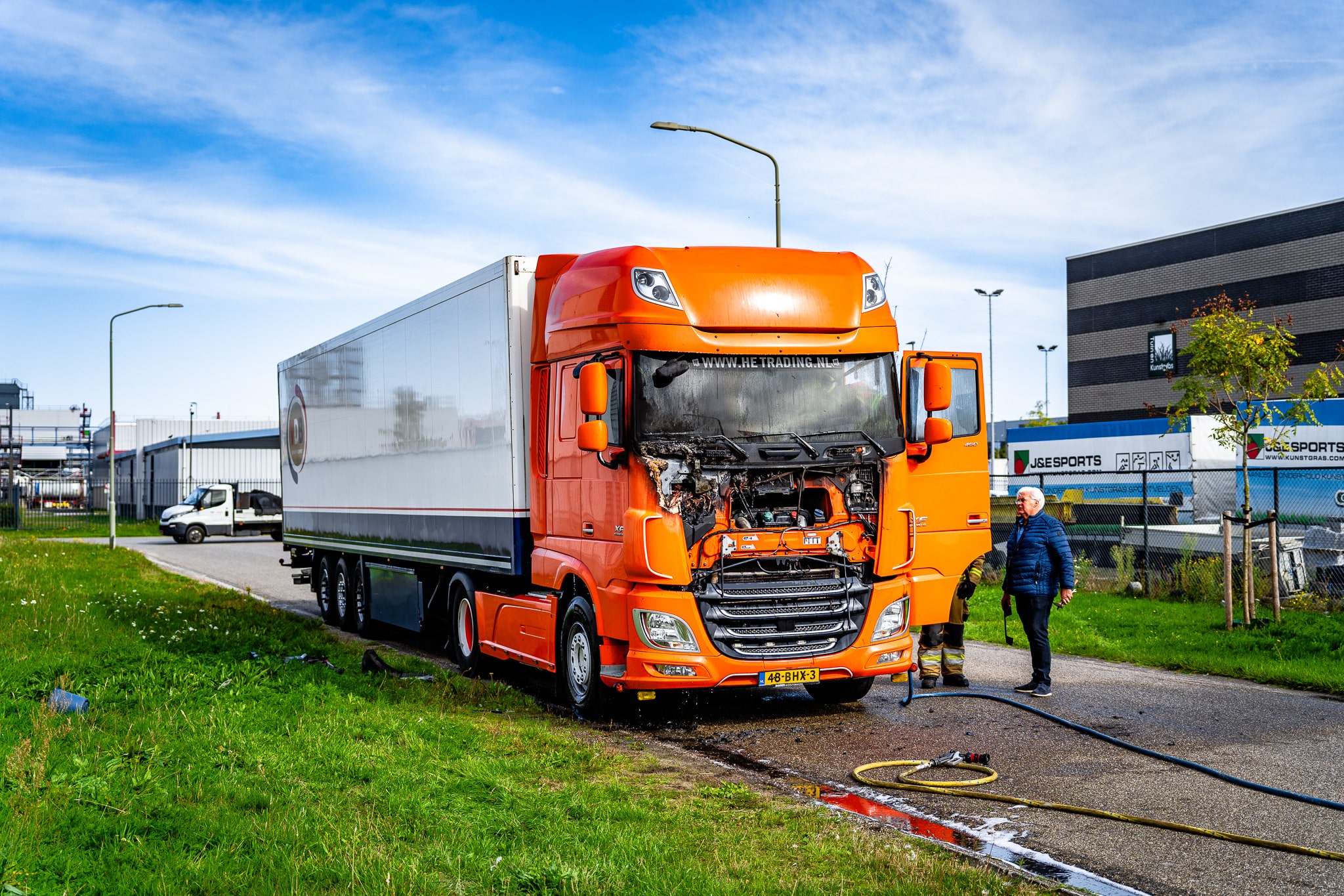 Vrachtwagen loopt zware schade op door brand in motorruimte