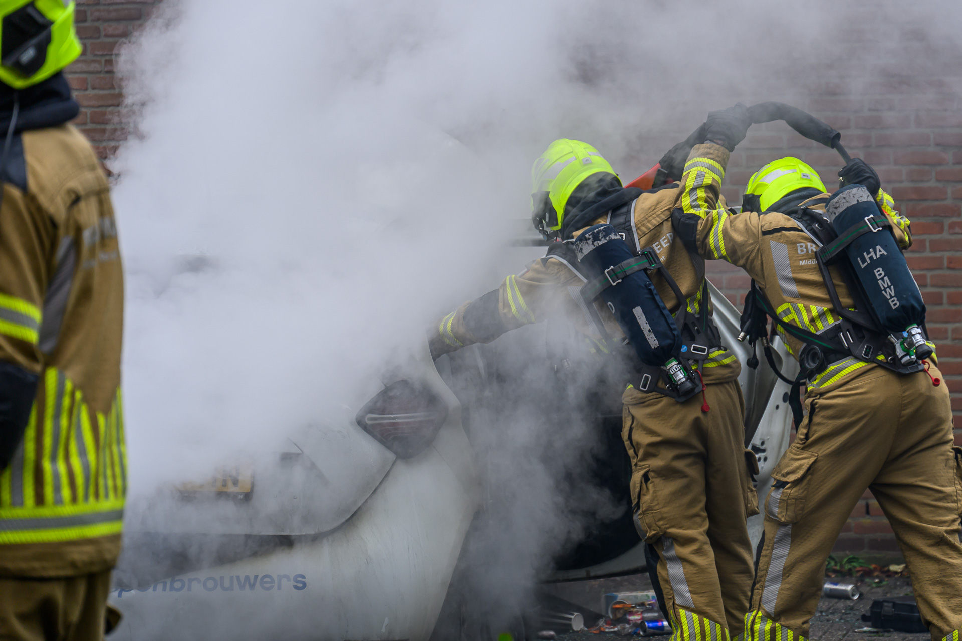 Elektrische auto vliegt in brand, brandweer past nieuwe blusmethode toe