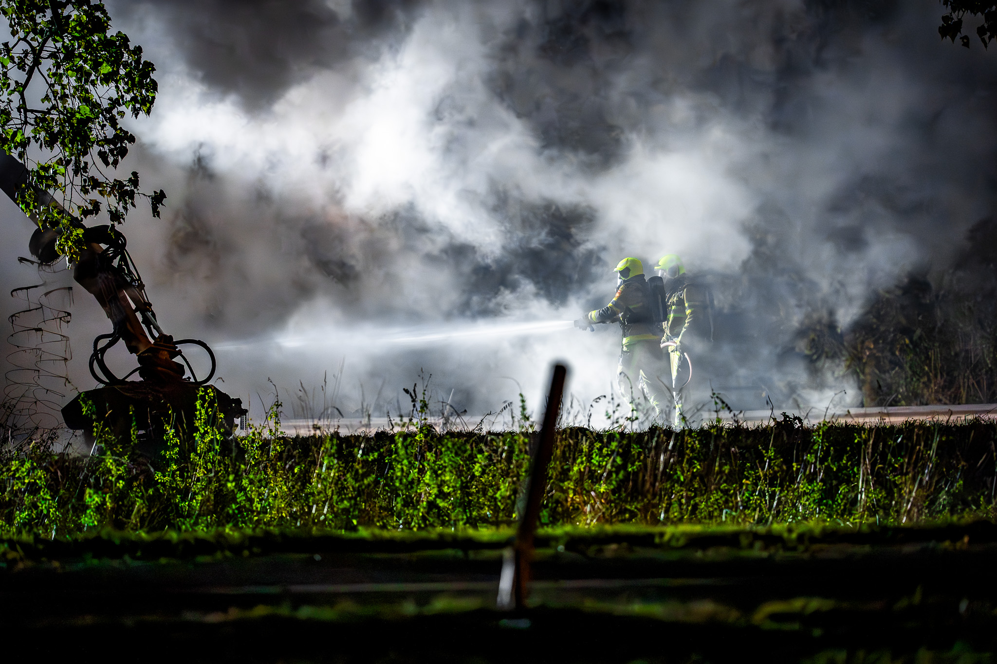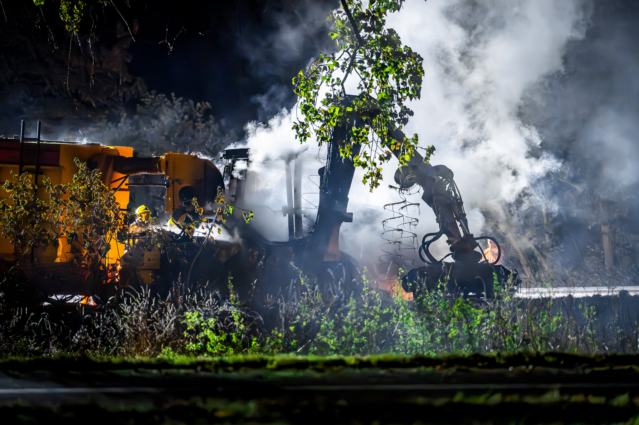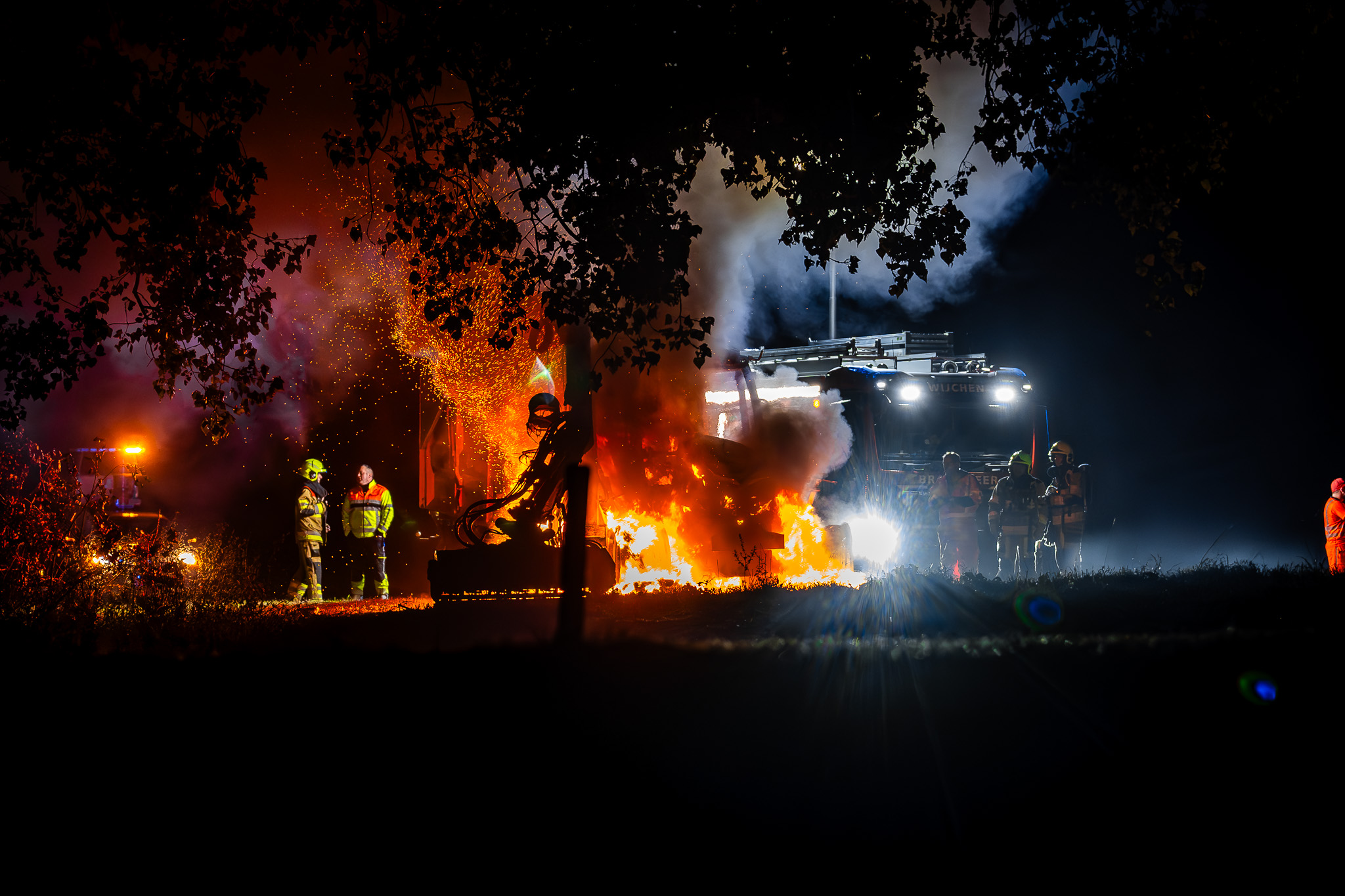 De wegwerkzaamheden konden ondanks de brand in de nacht doorgaan. De oorzaak wordt onderzocht.