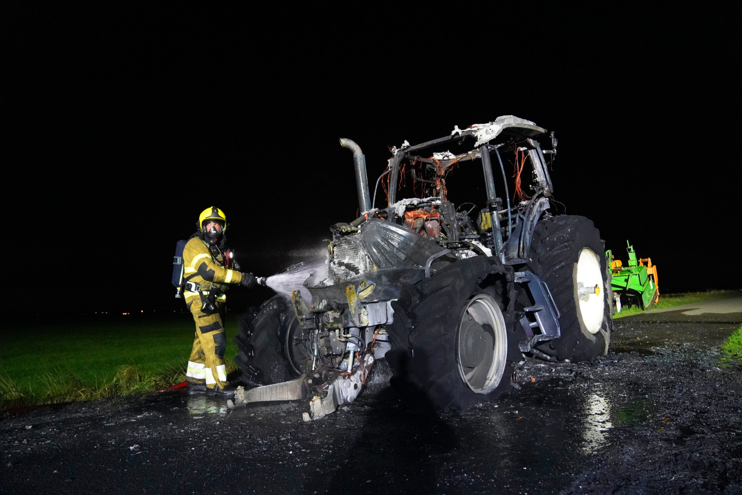 Tractor vliegt in brand, bestuurder ongedeerd