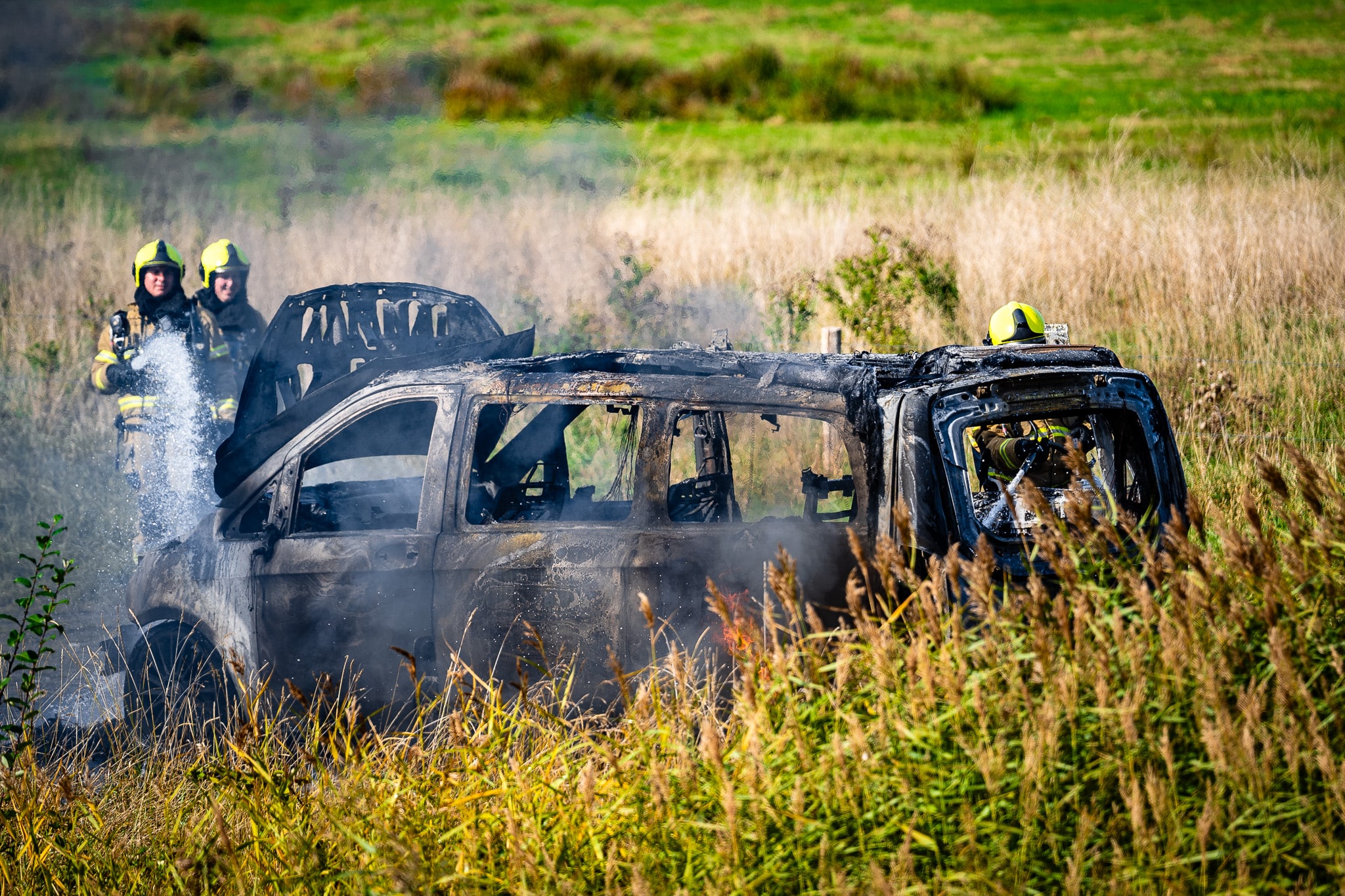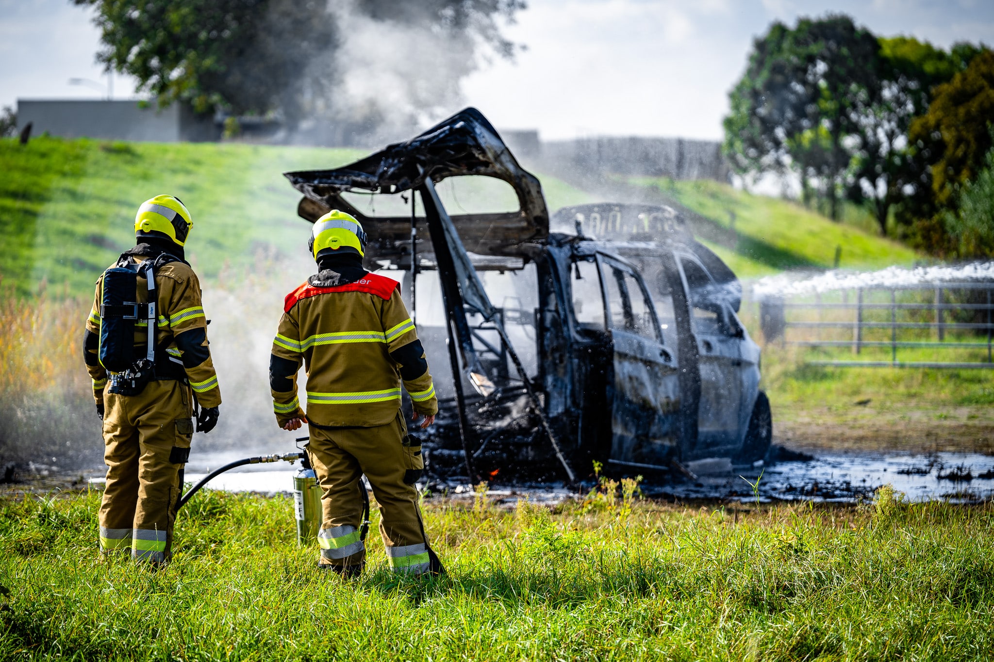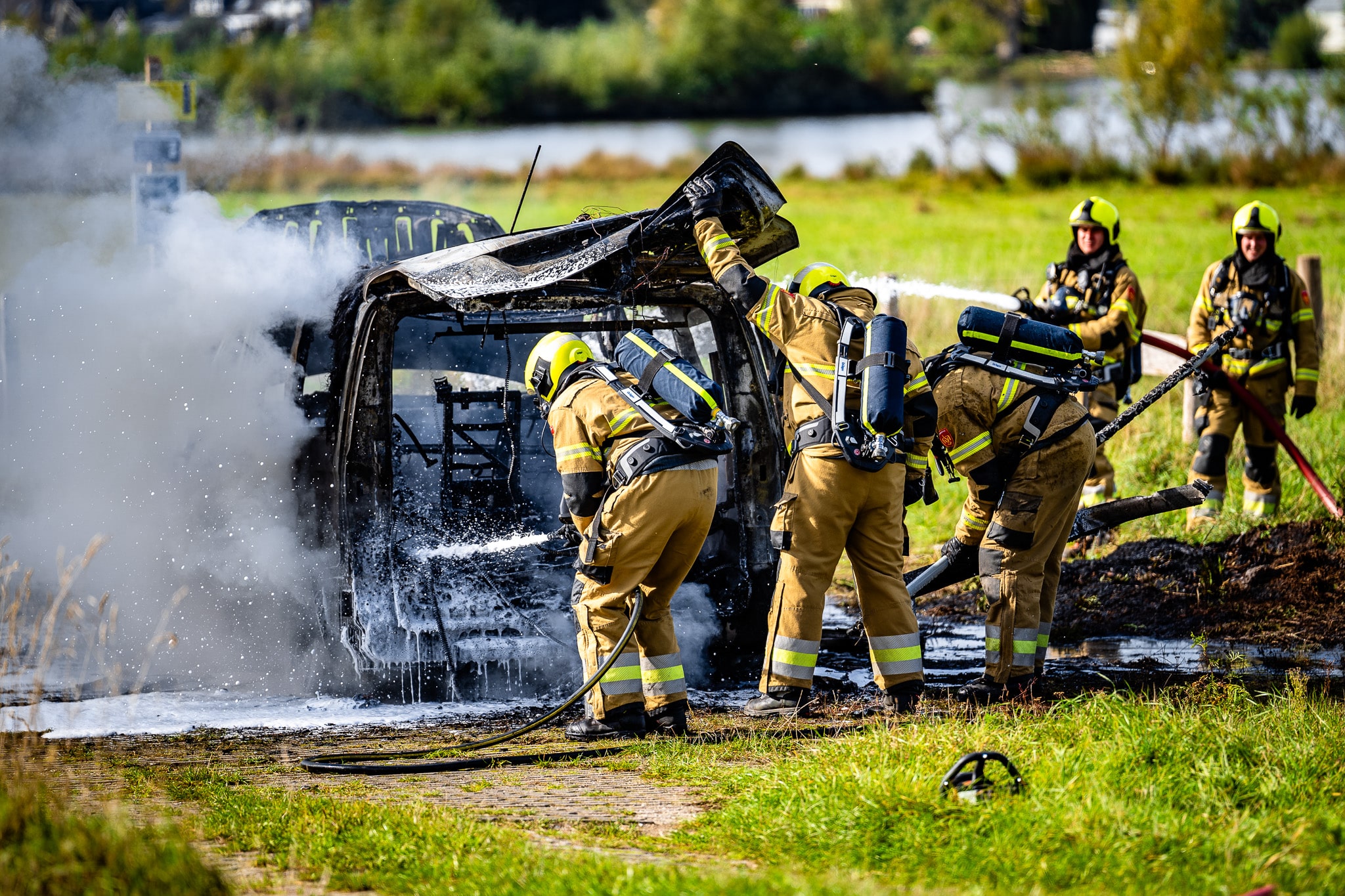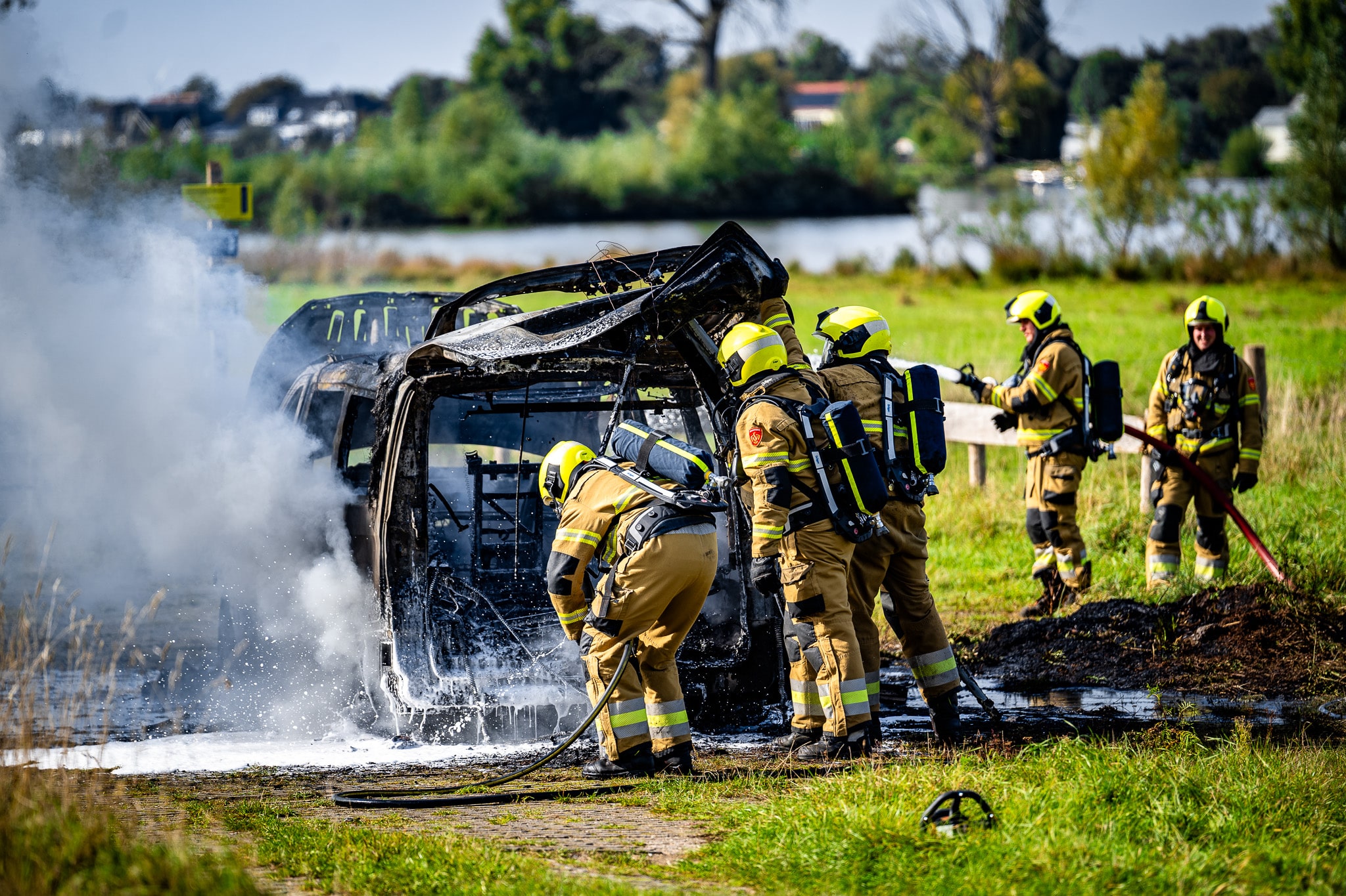 Bestelbus brandt volledig uit op parkeerplaats bij wandelgebied