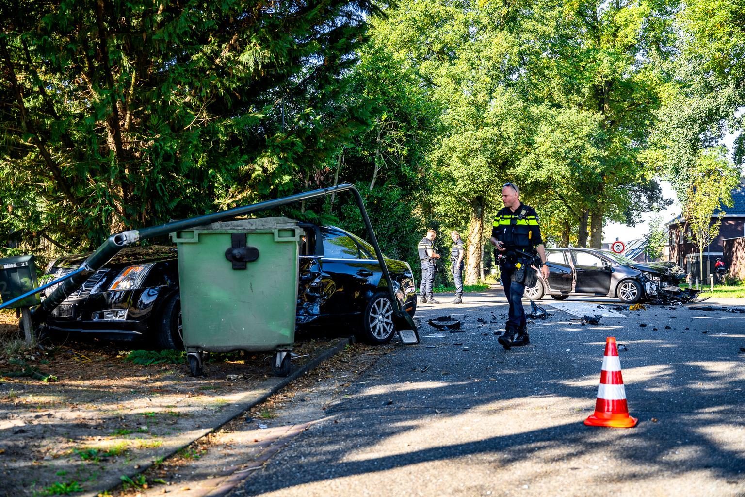 Een auto botste tegen de zijkant van een ander voertuig, waarna de aangereden auto een lantaarnpaal raakte en tot stilstand kwam bij een afvalcontainer. In een van de voertuigen bevond zich een moeder met twee jonge kinderen. In welk voertuig zij zaten is niet duidelijk. Beide auto’s raakten zwaar beschadigd en zijn door een bergingsbedrijf afgevoerd.