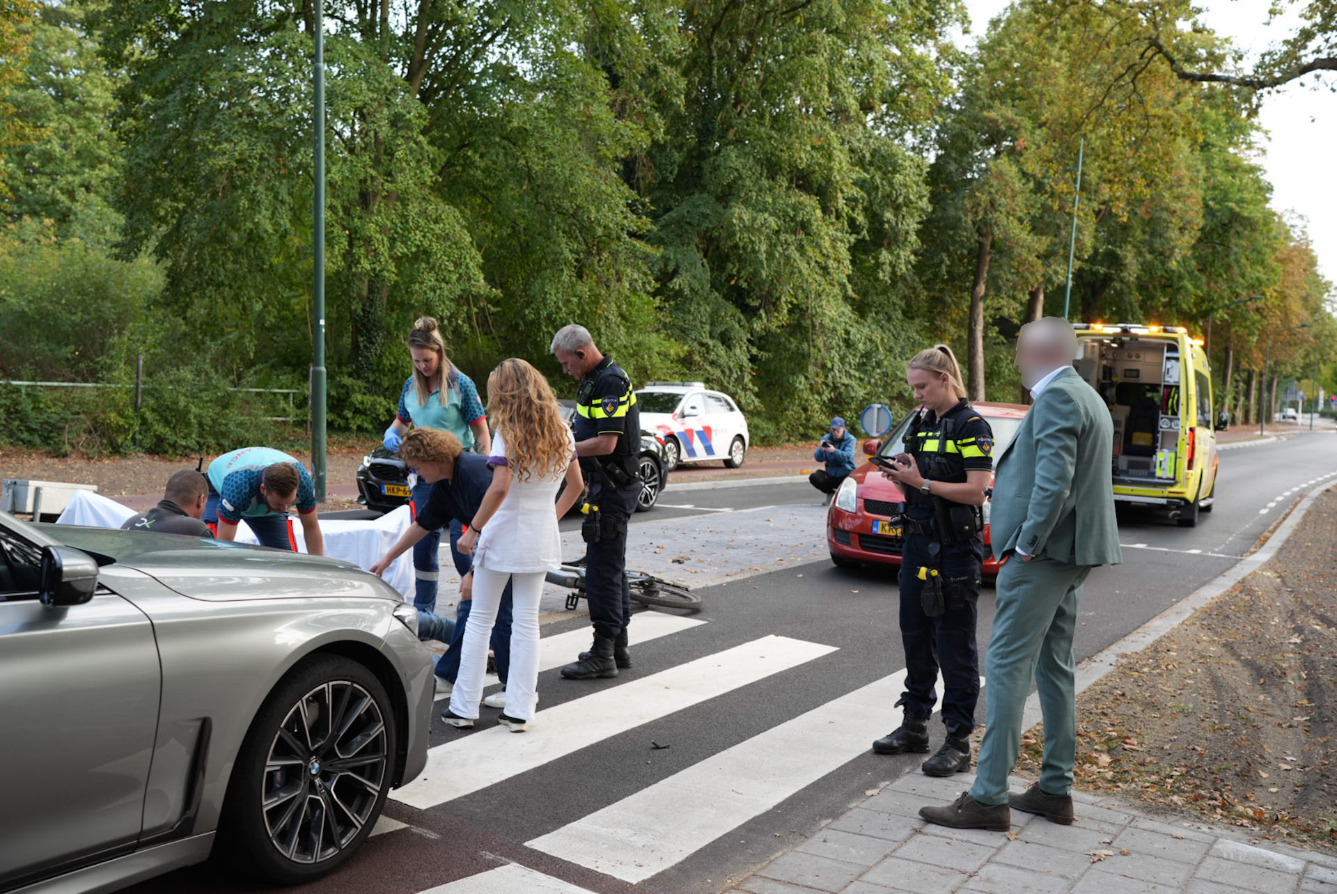 De auto raakte de fietser bij lage snelheid, maar het slachtoffer liep desondanks verwondingen op. De fietser is samen met de fiets per ambulance naar het ziekenhuis vervoerd. Over de aard en ernst van het letsel is op dit moment nog niets bekend.