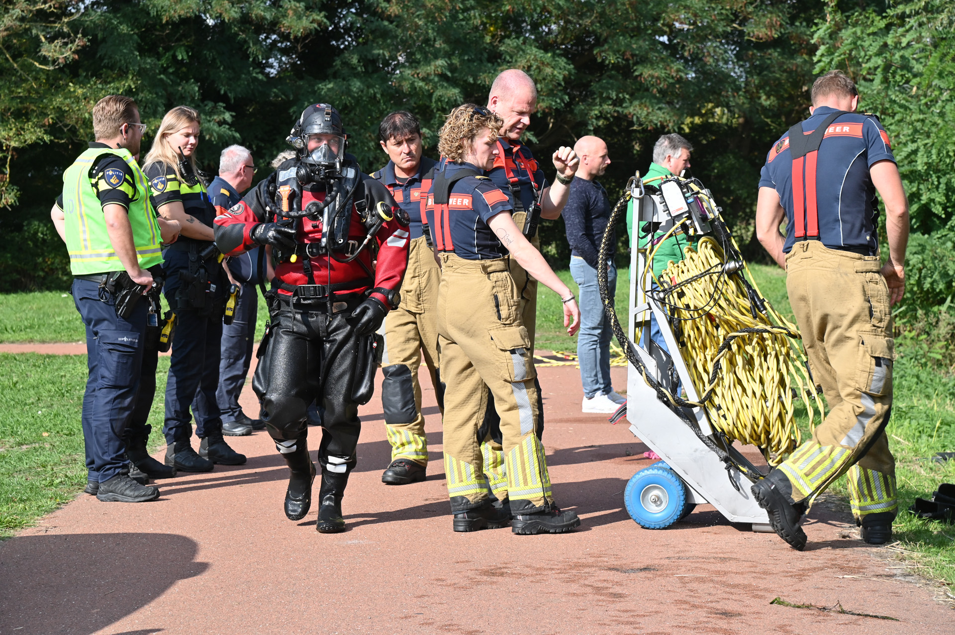 De melding kwam rond 12.10 uur binnen. Ter plaatse troffen hulpdiensten een T-shirt en een slipper aan op de oever. Meerdere politie-eenheden en brandweervoertuigen kwamen op de melding af.