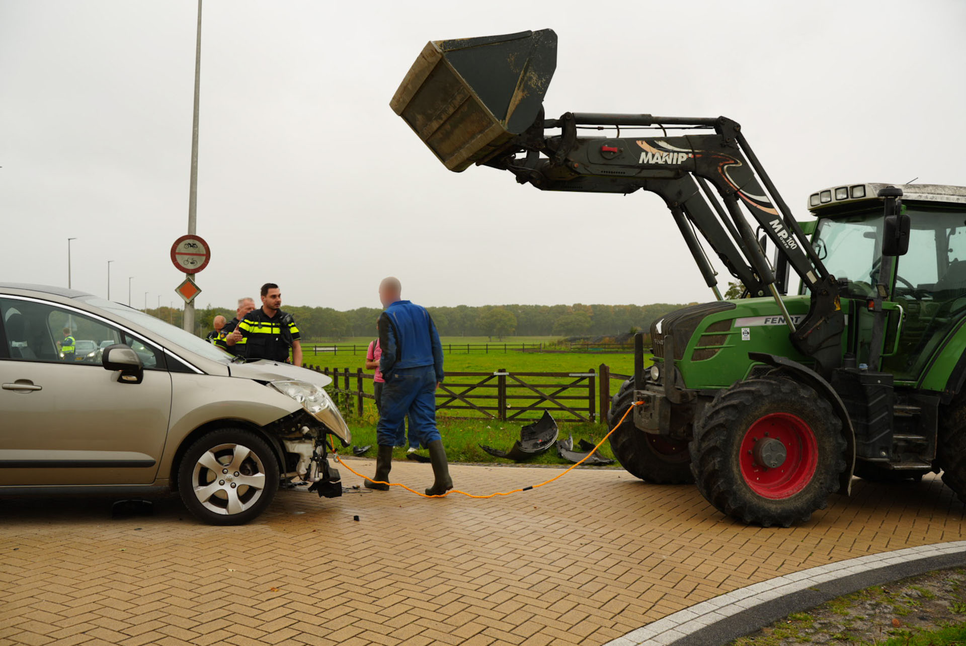 Bestuurder nagekeken na aanrijding op kruising, boer sleept auto weg
