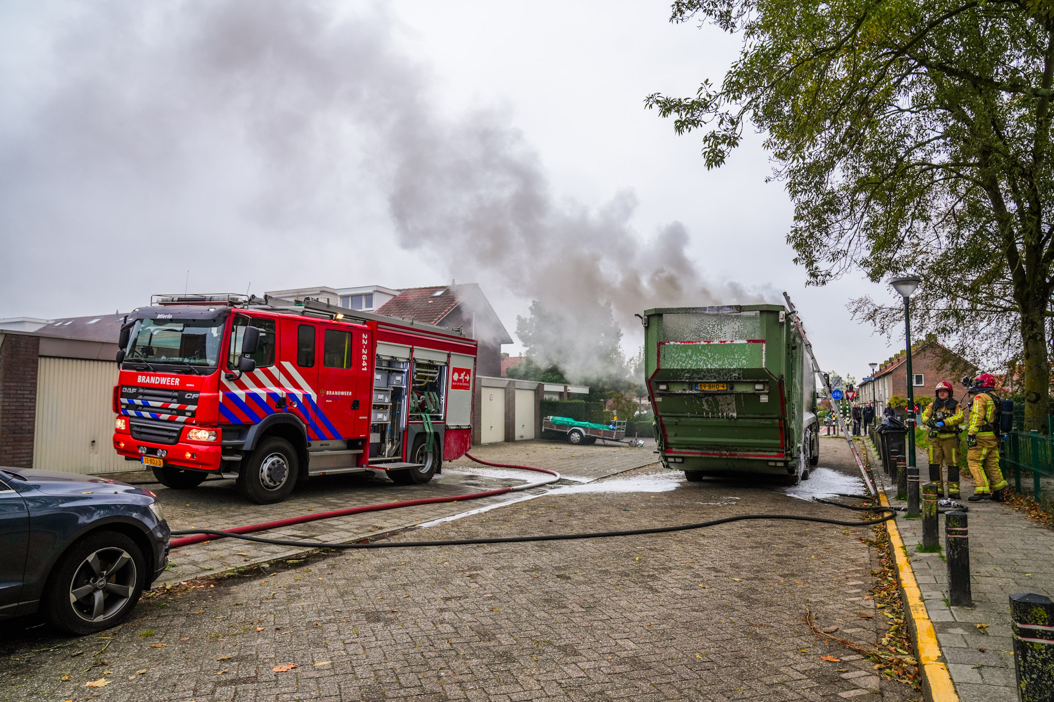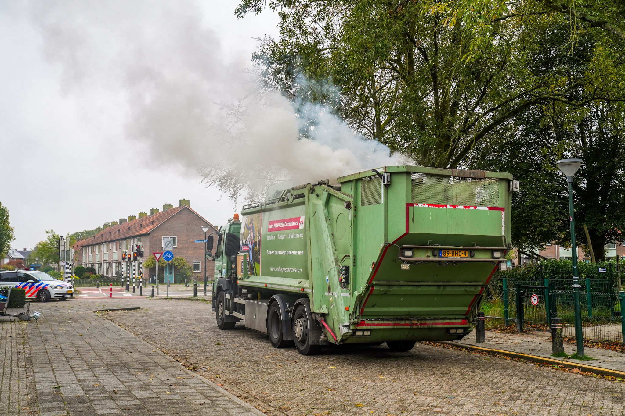Vuilniswagen vliegt in brand, lading gedumpt voor bluswerkzaamheden