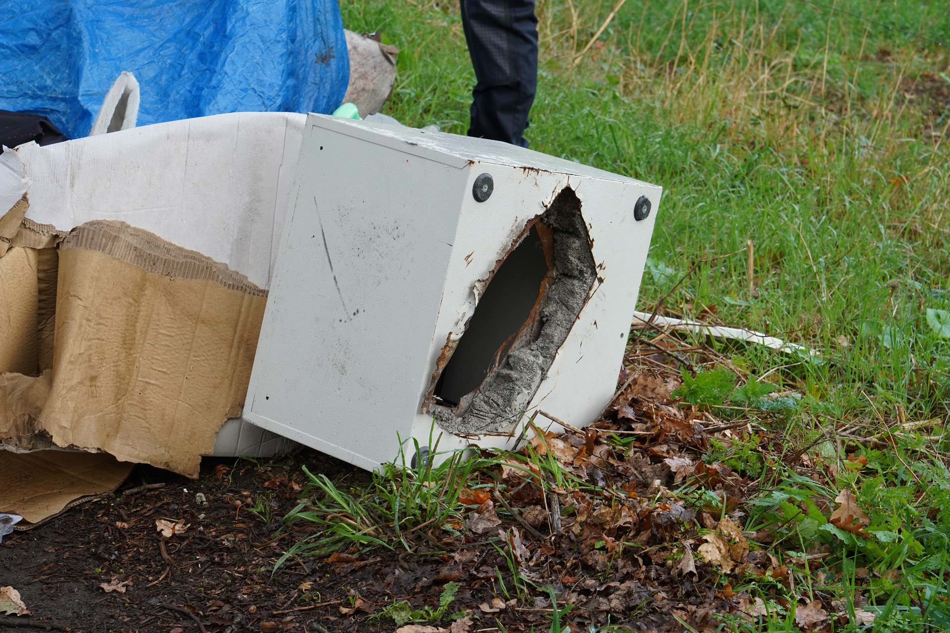 De brandweer heeft metingen verricht en geconstateerd dat er geen gevaarlijke stoffen aanwezig waren. Tussen het afval werd ook een open geslepen kluis aangetroffen.