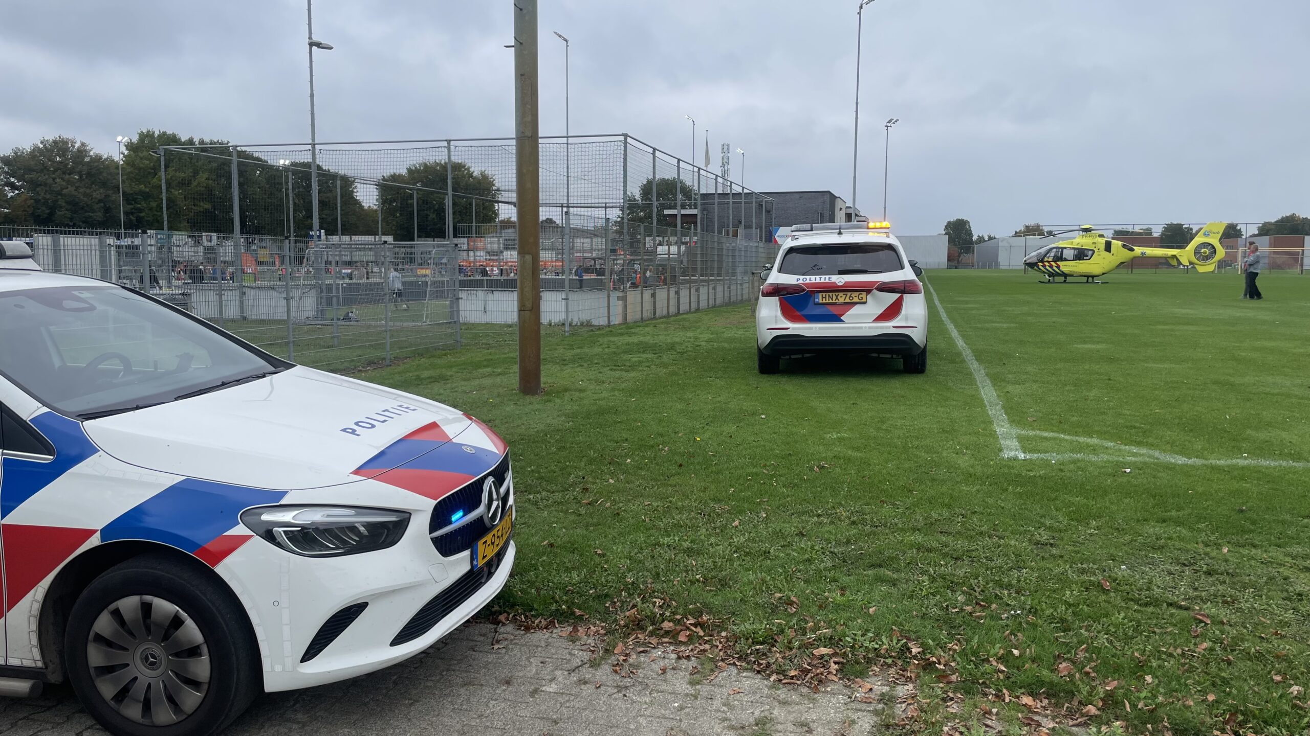 Jonge jongen onwel op sportpark, traumahelikopter landt op veld