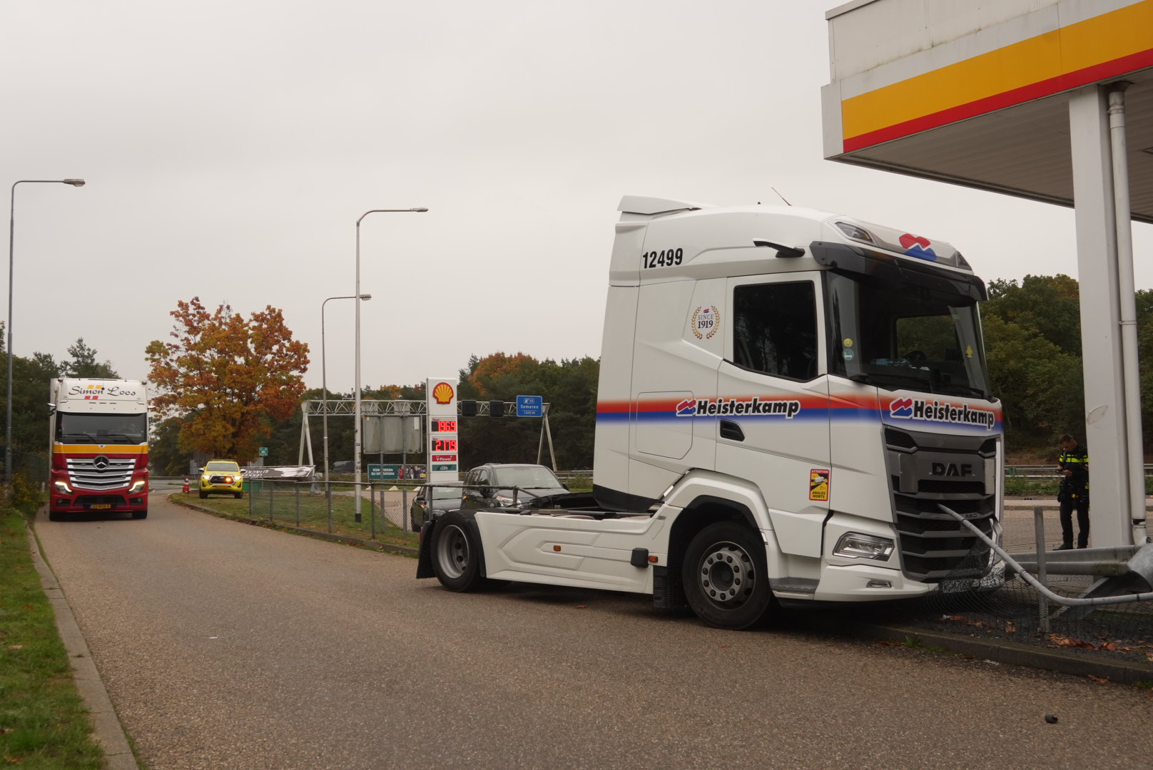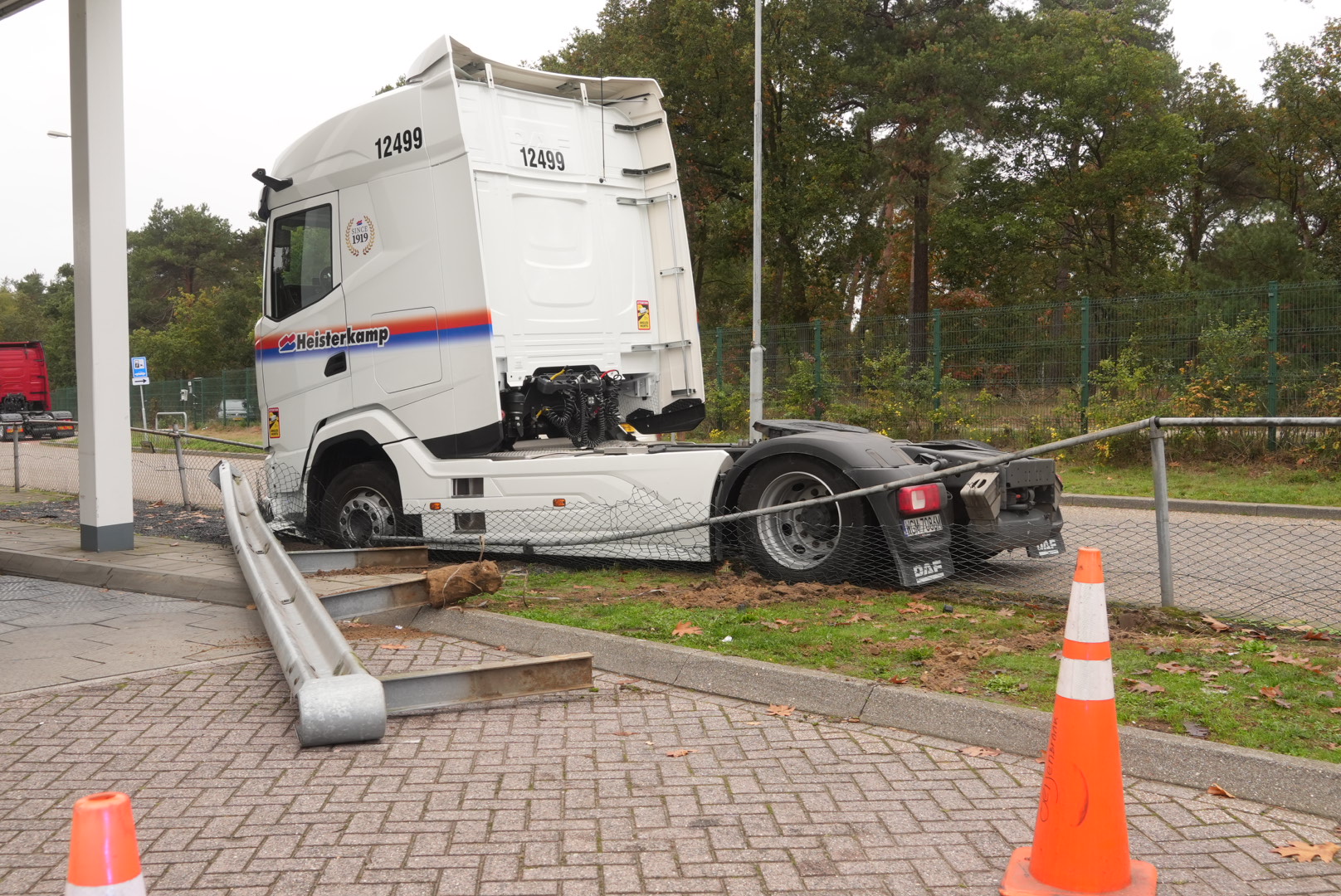 LIEROP – Bij een benzinestation langs de A67 bij Lierop is een vrachtwagen van de weg geraakt tijdens het oprijden van de parkeerplaats. Het voertuig botste daarbij tegen de vangrail en een hek dat de parkeerplaats van het tankstation scheidt.