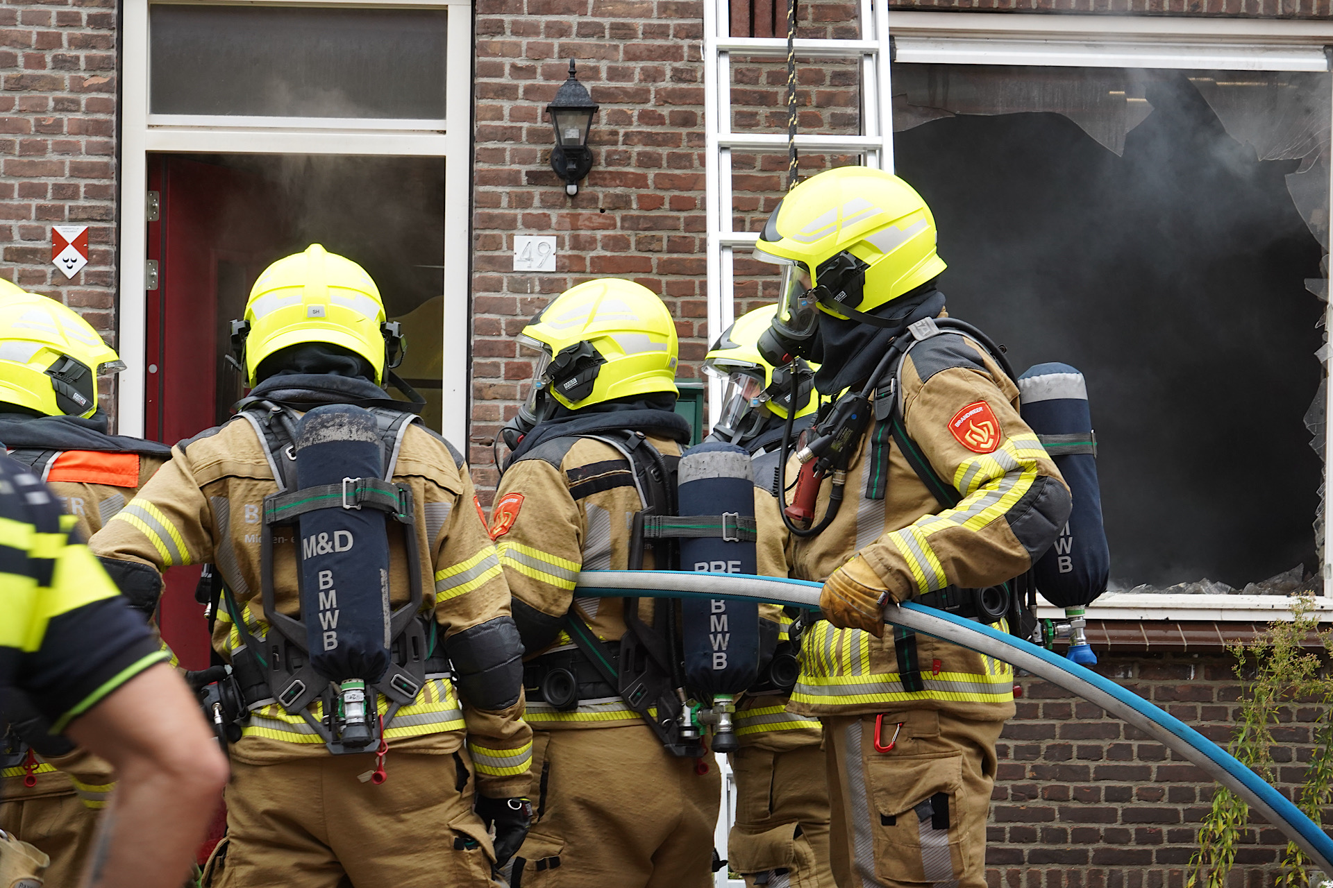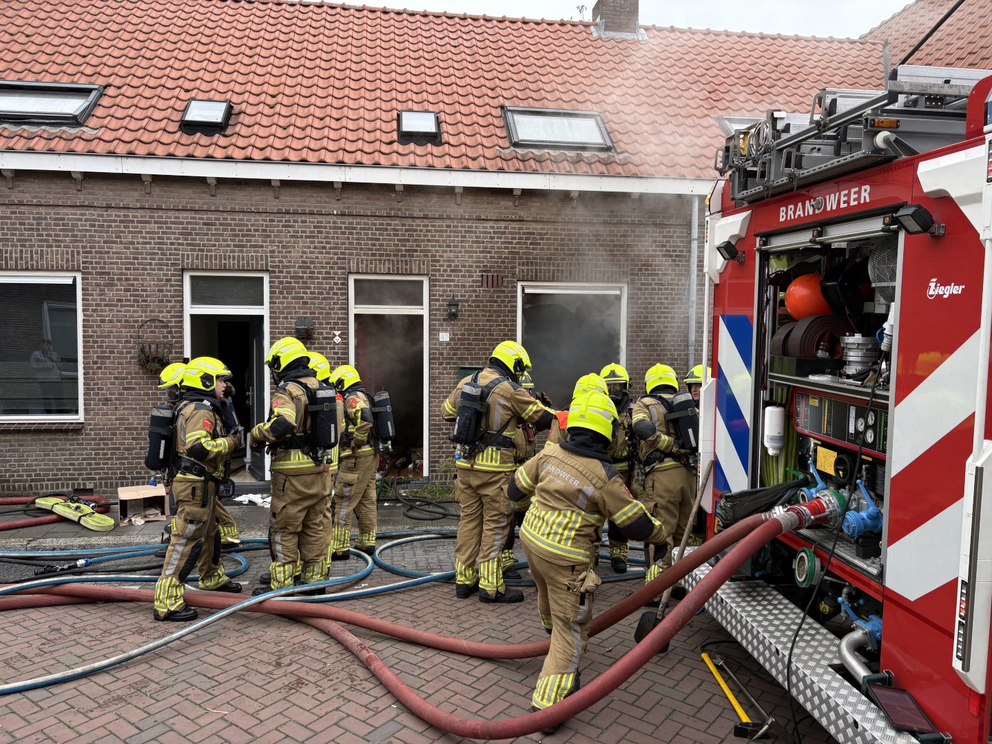 De brand ging gepaard met flinke rookontwikkeling. De brandweer schaalde snel op en kwam met twee blusvoertuigen en een hoogwerker ter plaatse. Ook politie en ambulancedienst kwamen naar de locatie. Ramen werden ingeslagen om de rook uit de woning te laten ontsnappen.