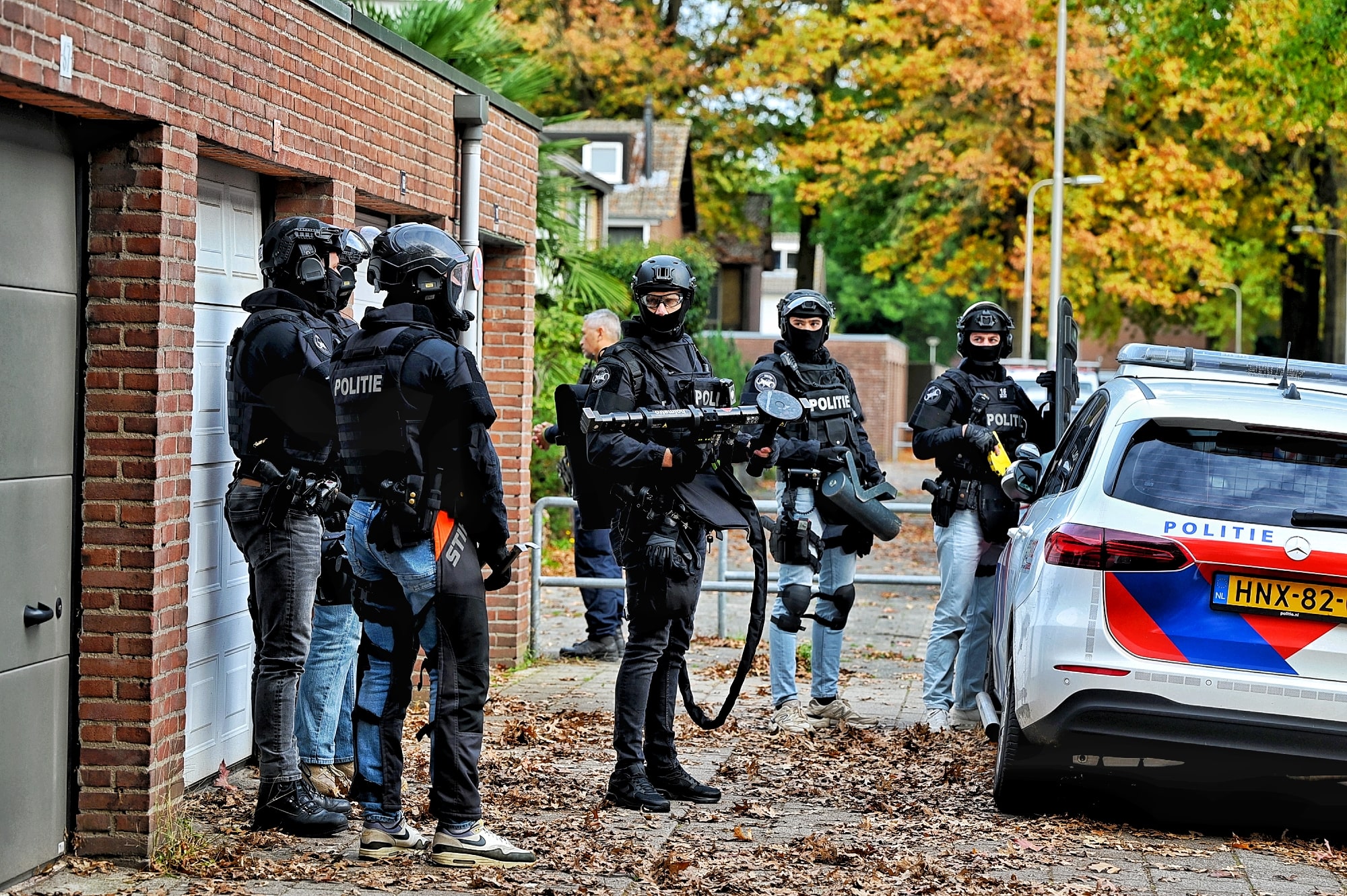 De straat werd urenlang afgezet met linten, terwijl veel buurtbewoners toekeken vanaf de afzetting. Rond 16.30 uur kwam een arrestatieteam in actie. Daarbij werden ramen aan zowel de voor- als achterkant van de woning ingeslagen en werd de deur geforceerd om binnen te dringen.