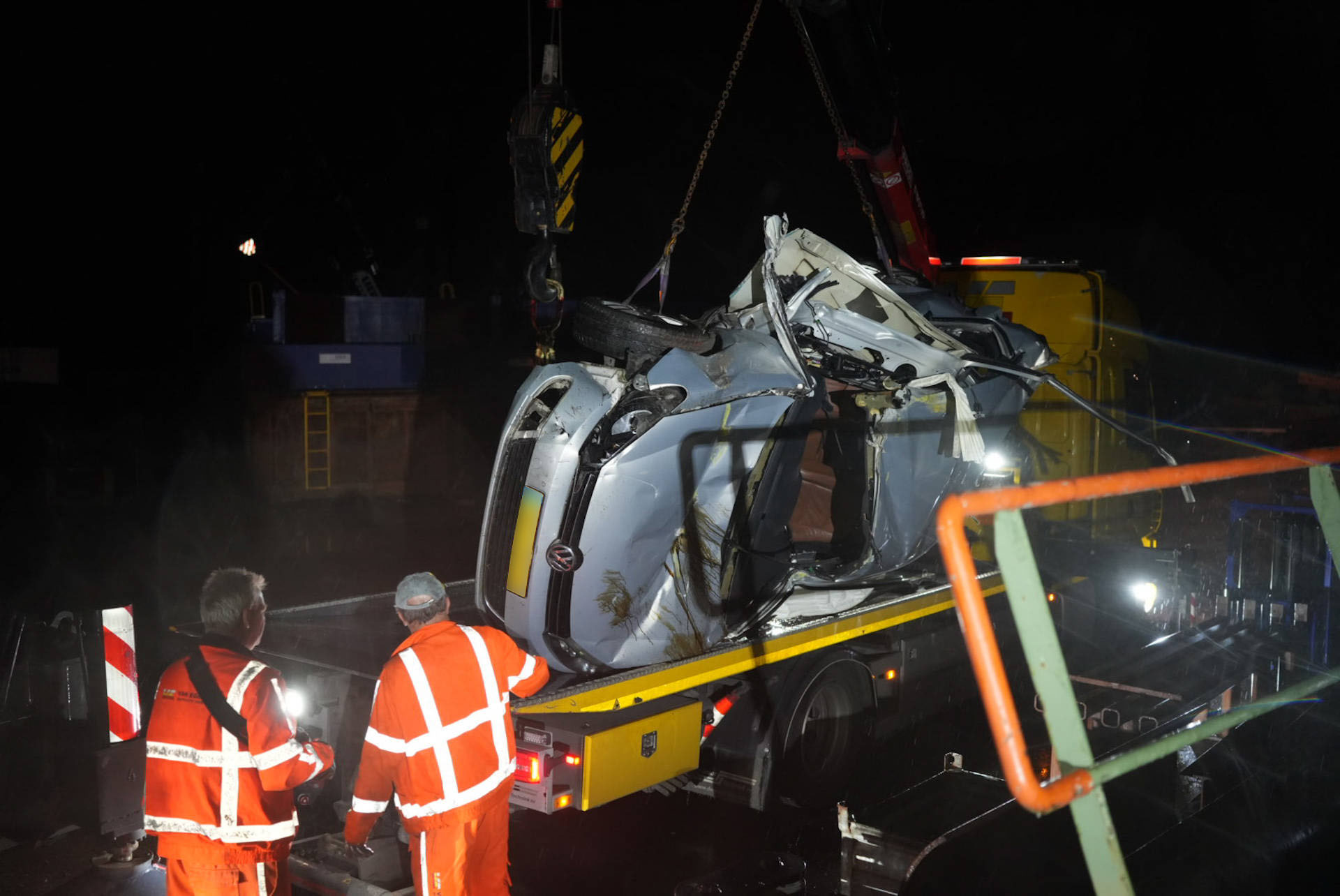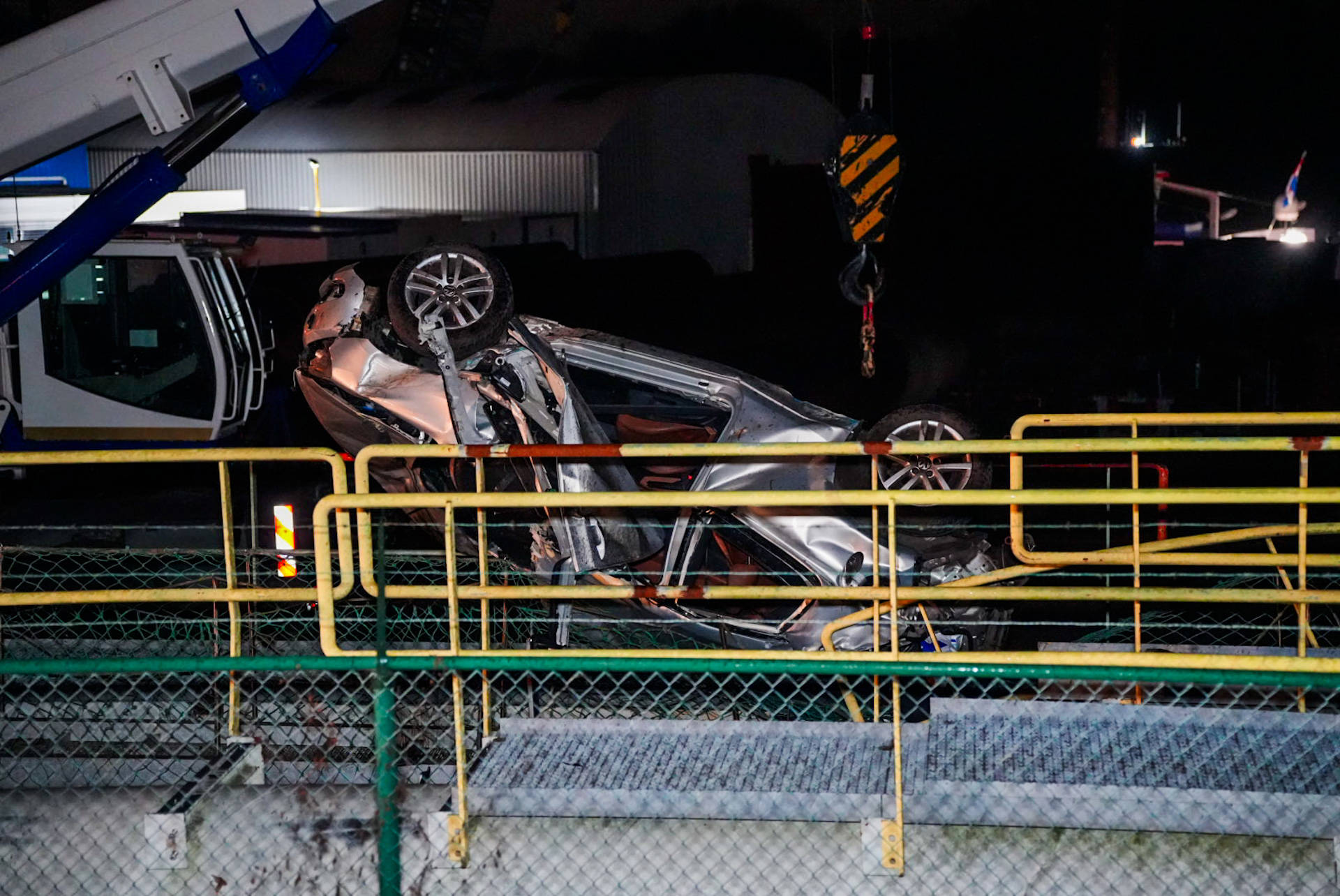 Het incident vond plaats rond tien minuten over twaalf. In een bocht reed de auto rechtdoor, raakte van de weg en werd via een talud gelanceerd. Het voertuig vloog vervolgens over een hek van een naastgelegen bedrijfsterrein en kwam terecht op metalen loopbruggen die normaal dienen als toegang tot aangemeerde schepen. De auto gleed over de bruggen en botste na circa 130 meter tegen het einde van de constructie.